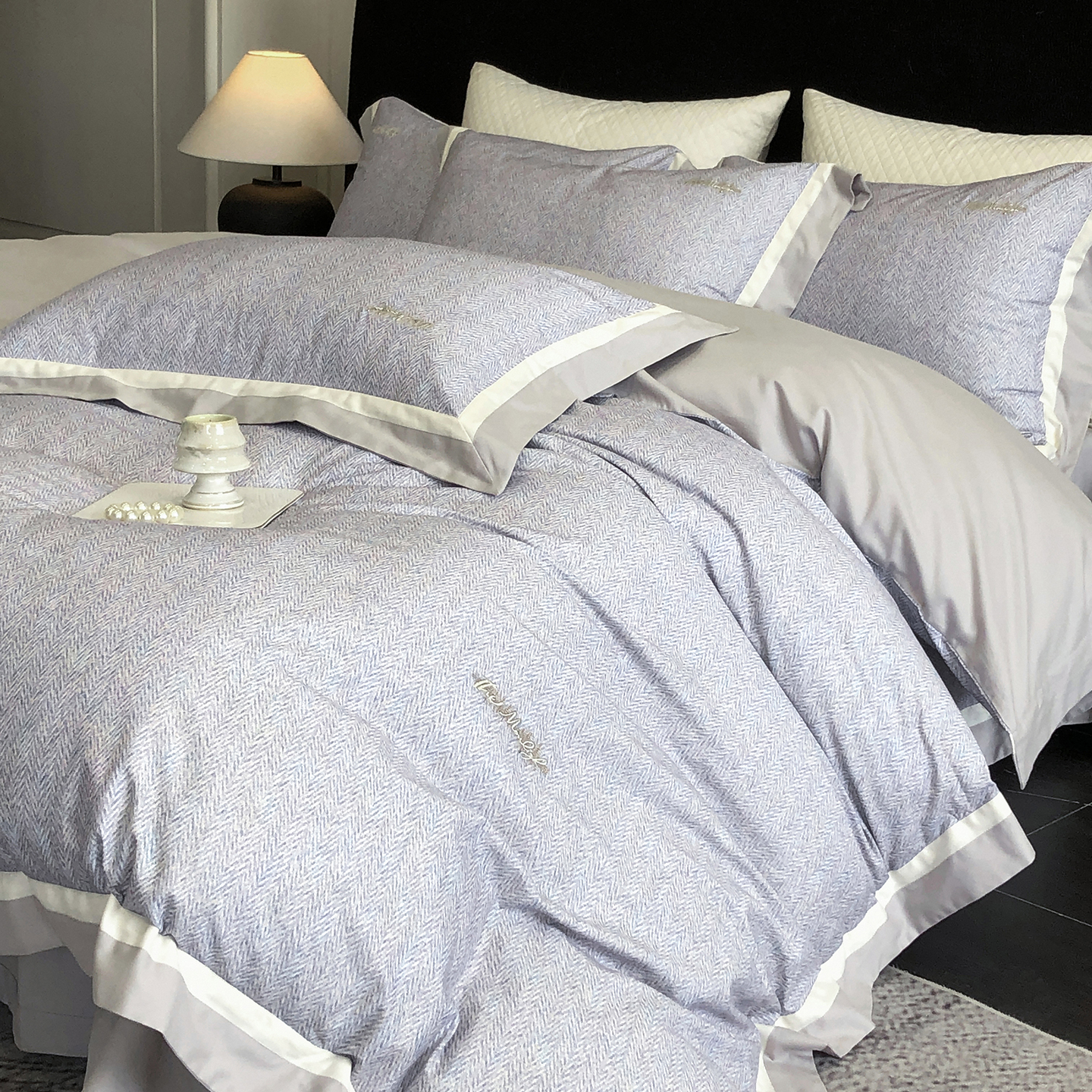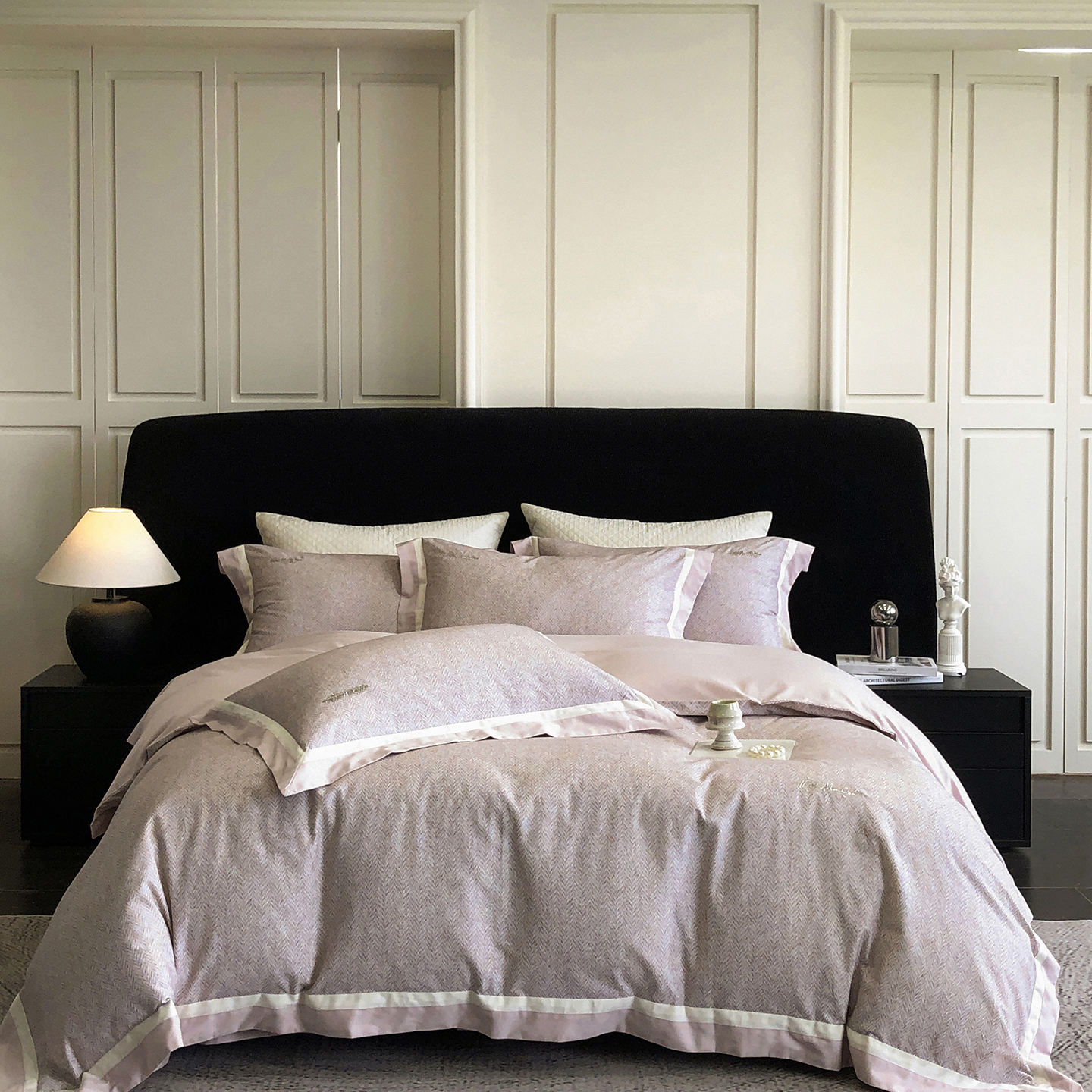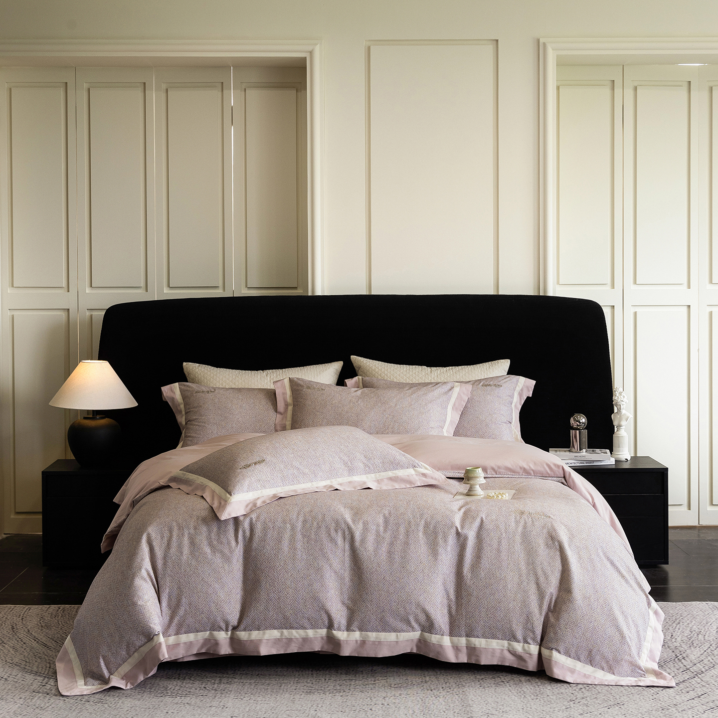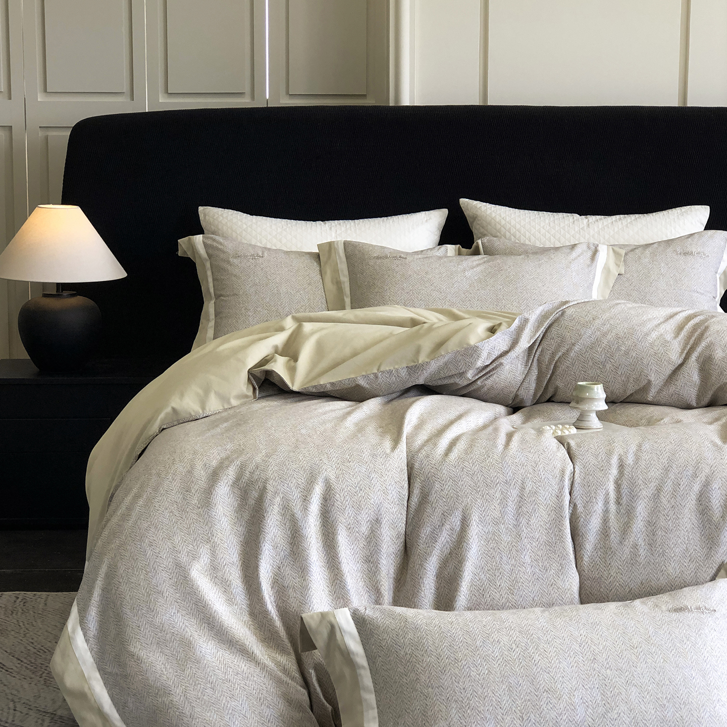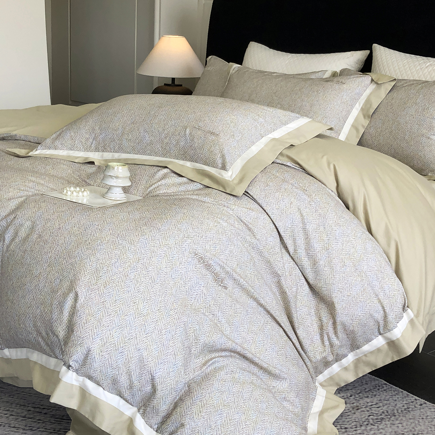 佳汐蓝家纺 2025新款全棉60支磨毛肌理纹撞色拼边四件套-瑶雅系列 瑶雅-黄