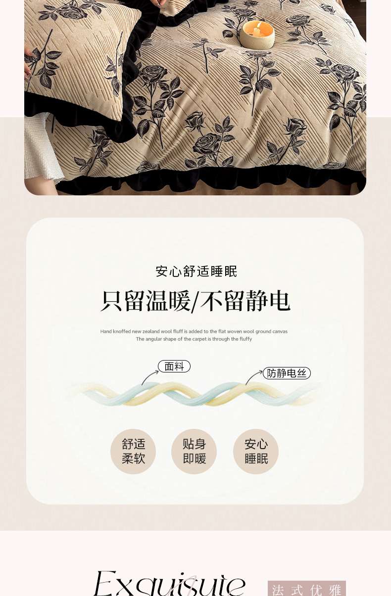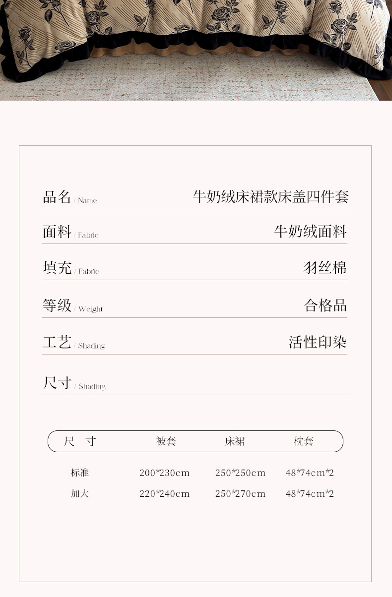 商品名称:(总)野合家纺 2025新款加厚雕花牛奶绒床盖款四件套