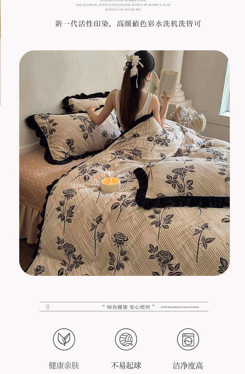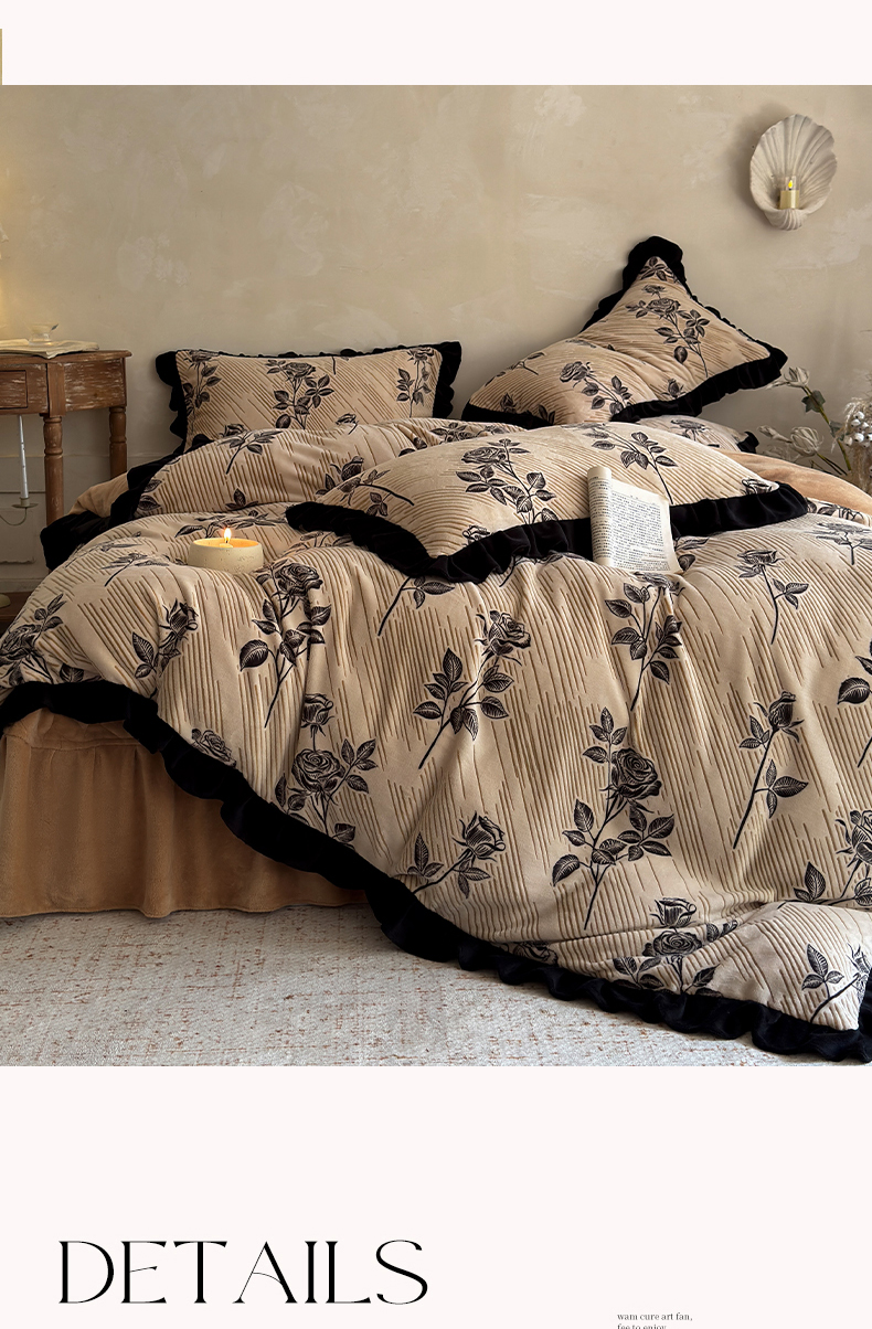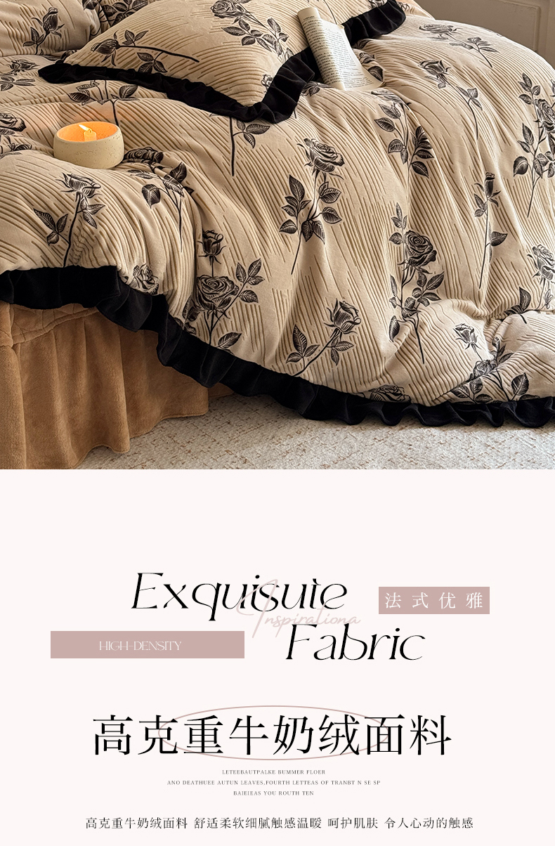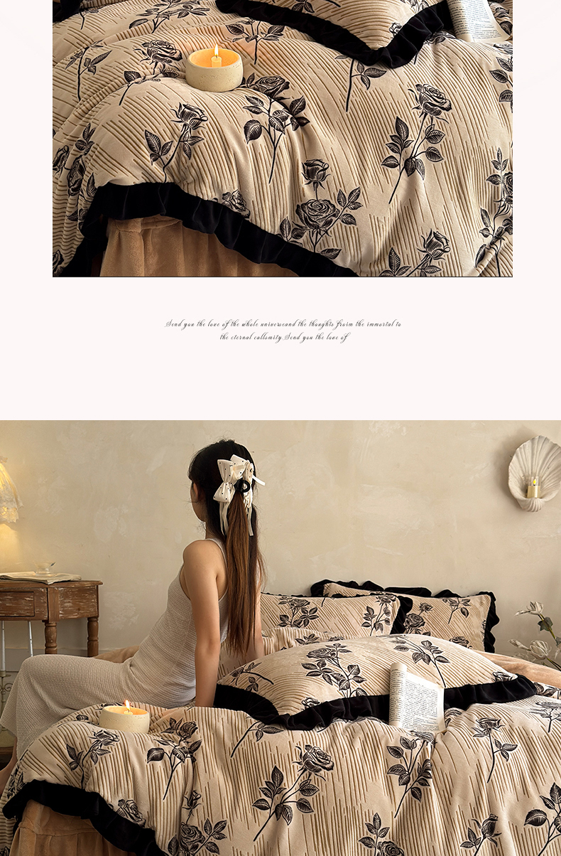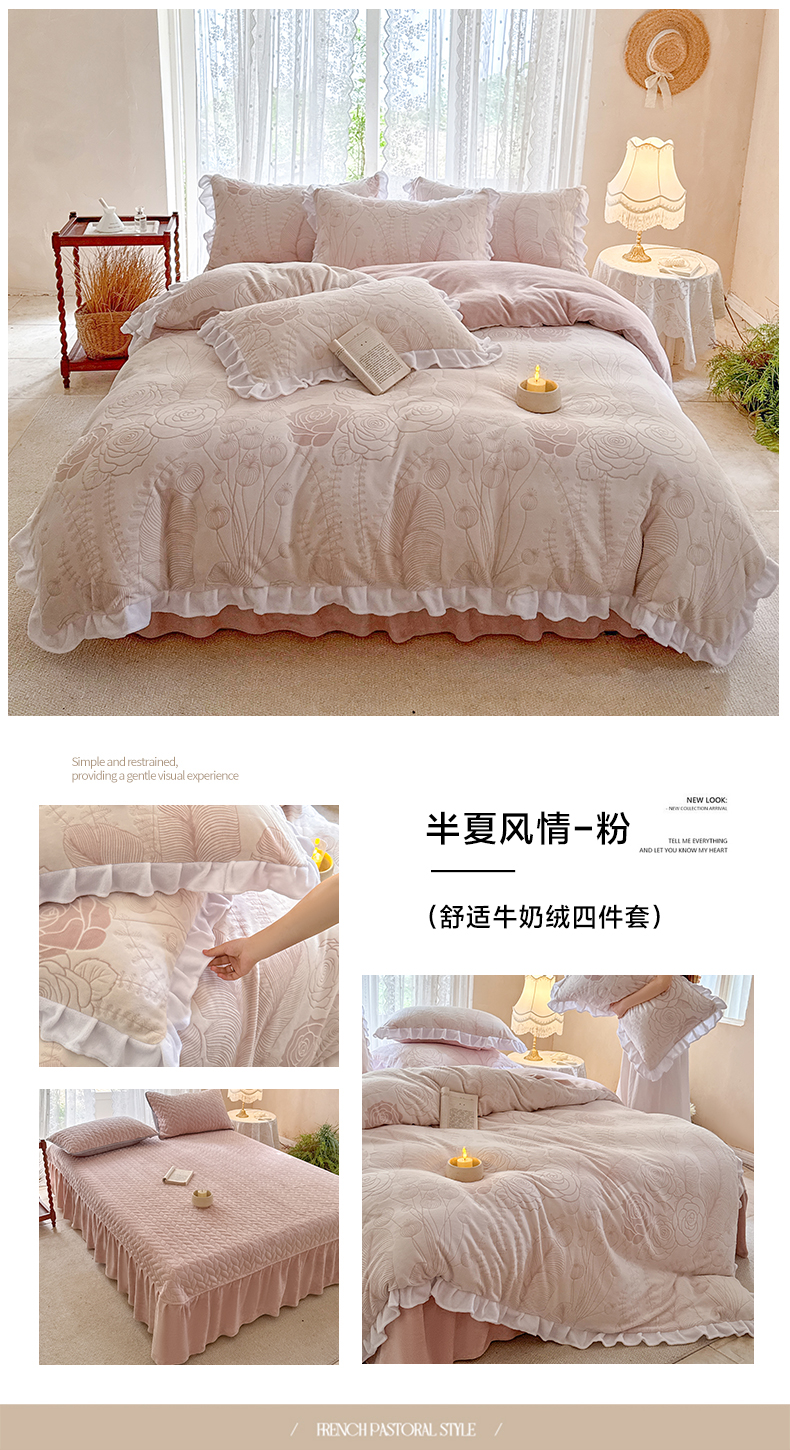 (总)野合家纺 2024新款牛奶绒雕花绒四件套韩版花边绒套件,香茶花-象牙白,香茶花-马利蓝,香茶花-杏仁粉,香茶花-R17
