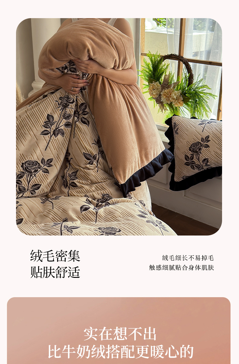 (总)野合家纺 2025新款加厚雕花牛奶绒床盖款四件套