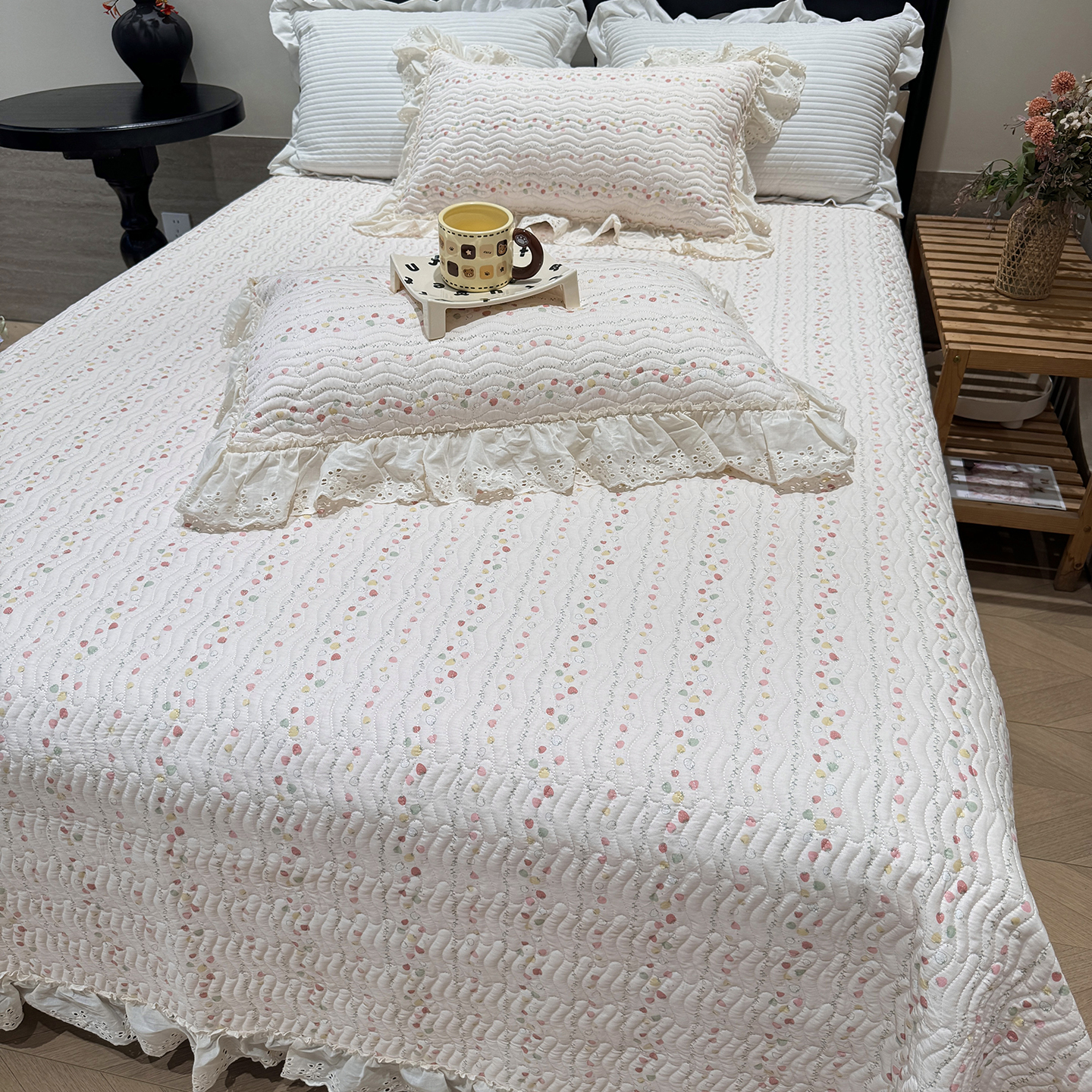 (总)莱豫家纺 2025春夏新款纯棉全棉花边款床盖三件套,呆呆熊,组合图仅供参考,花语绿,花语紫,柠檬,蔷薇,西瓜兔,夏蓝,夏梦,夏之语,小花熊,樱花
