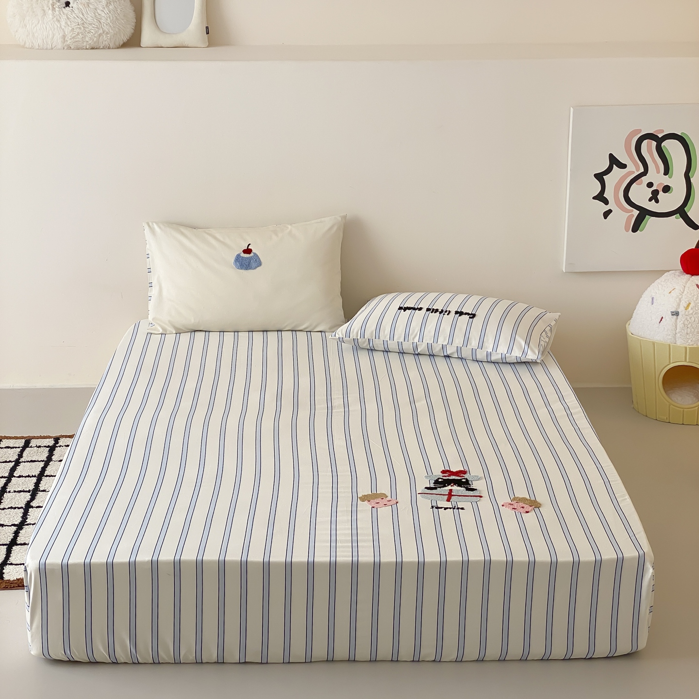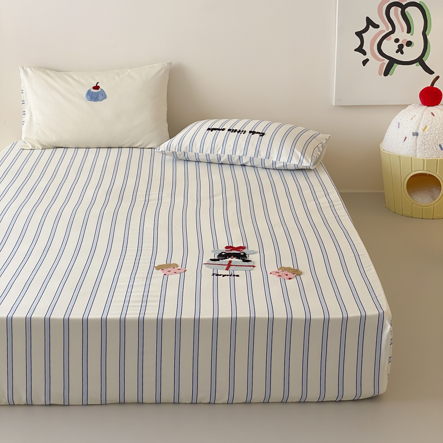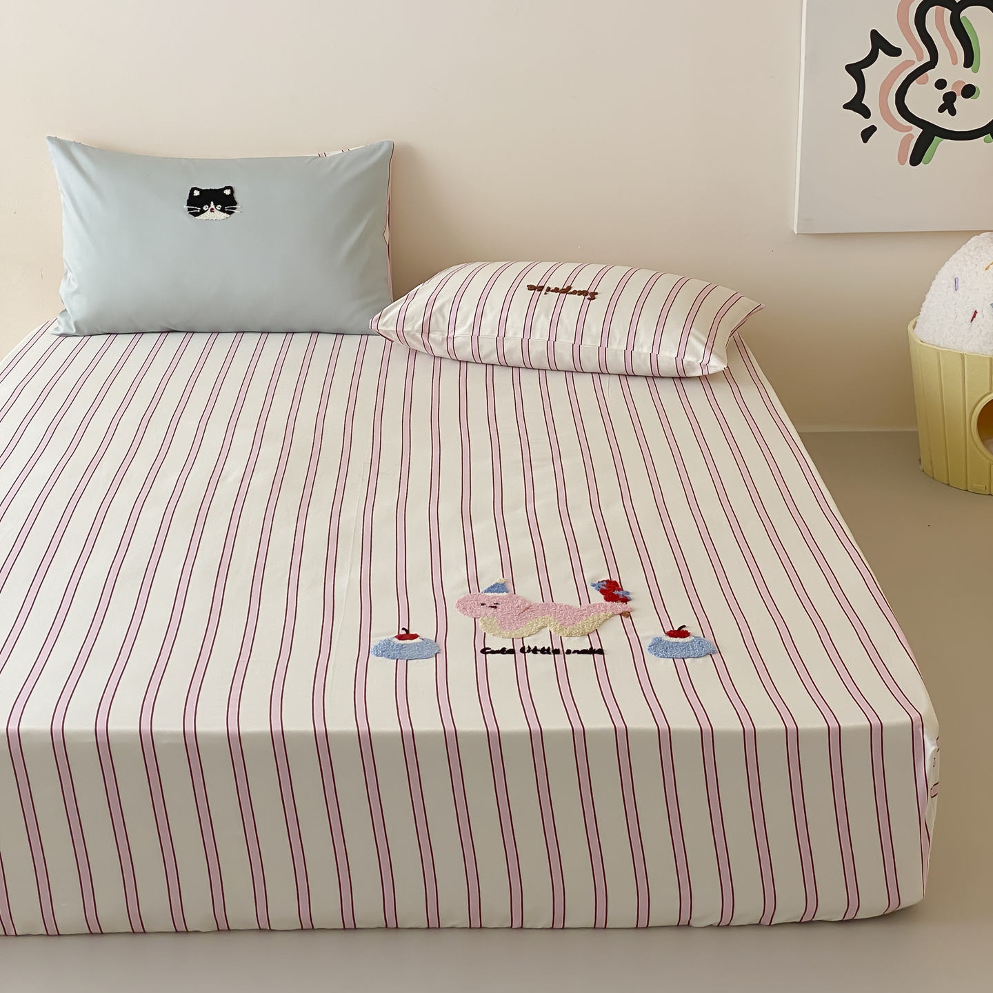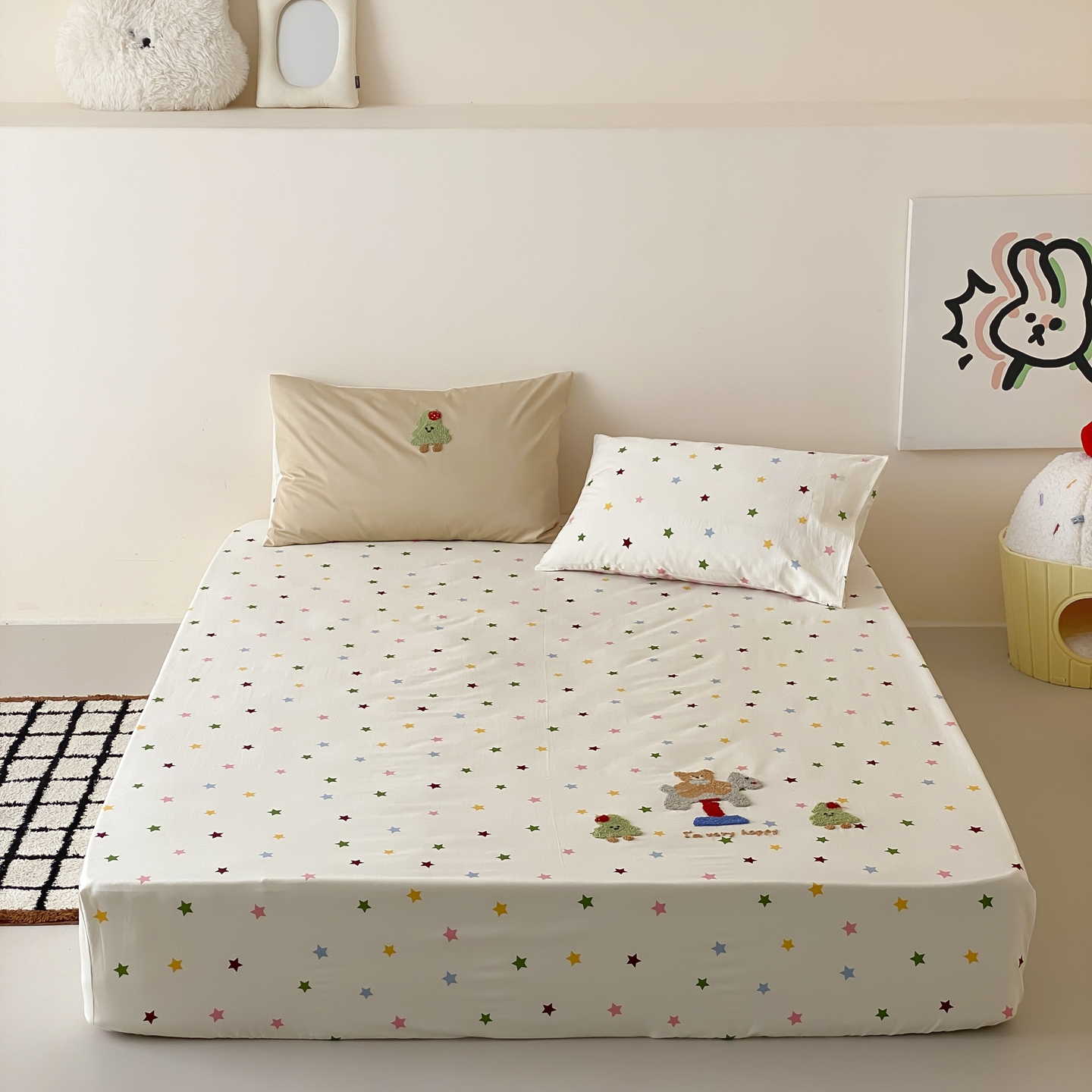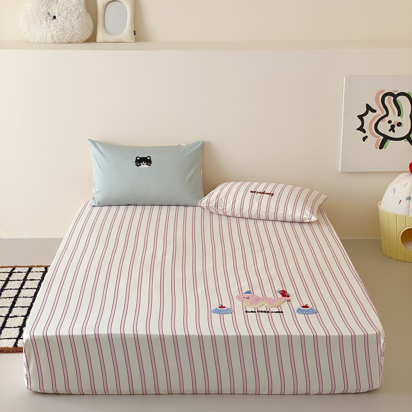 商品名称:(总)时光里 2025新款100S卡通风贡缎毛巾绣单床笠
