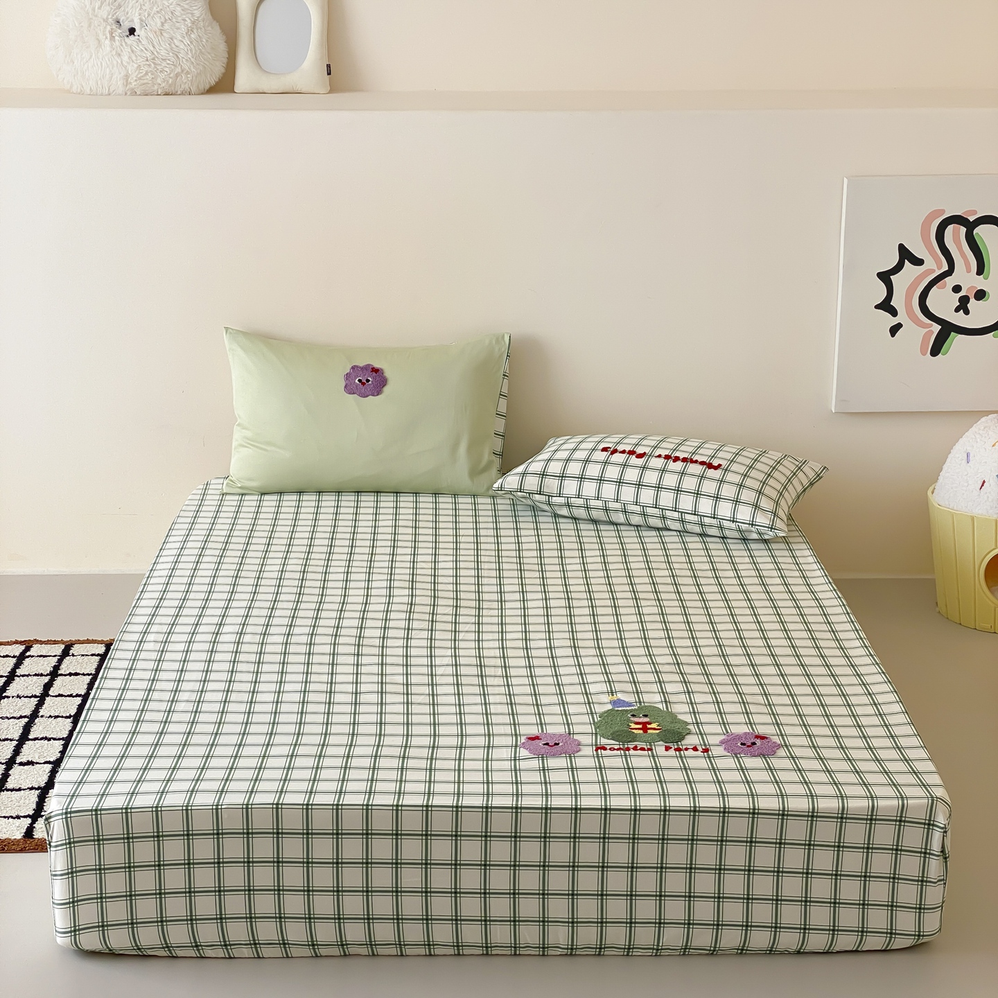 (总)时光里 2025新款230克印花牛奶绒系列单床笠,波点小汪,动物园,扶摇,格子兔,花盏,咖格汪,拉布,萌宠物语,喵星人,奶兔团,甜蜜熊,兔仔熊,汪汪巾,汪汪小队,小犬帽,集合图