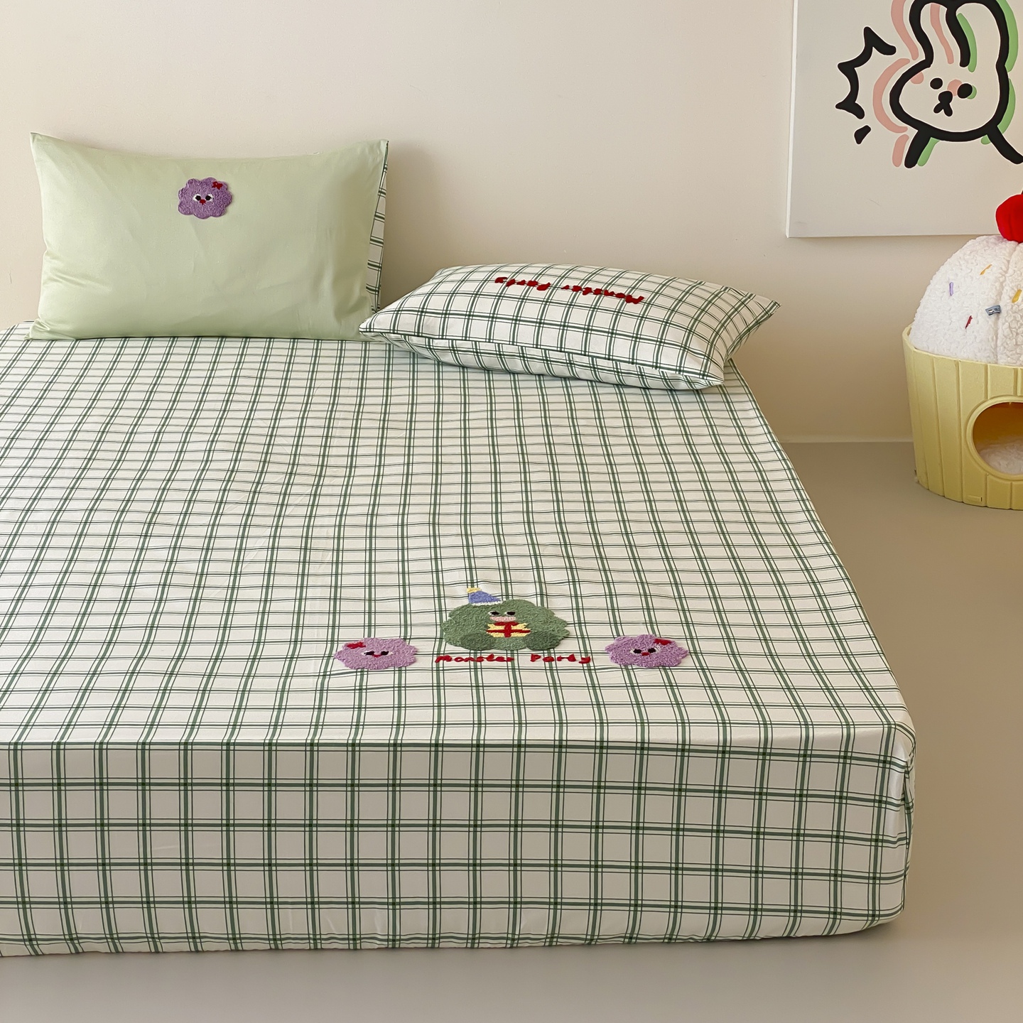 (总)时光里 2025新款双层纱系列卡通风枕套,豹豹妮,啵啵乐园,布丁,可艾,萌宠宝宝-绿,如甜初梦,甜品屋-棕,小兔乖乖,竹汐恋,集合图