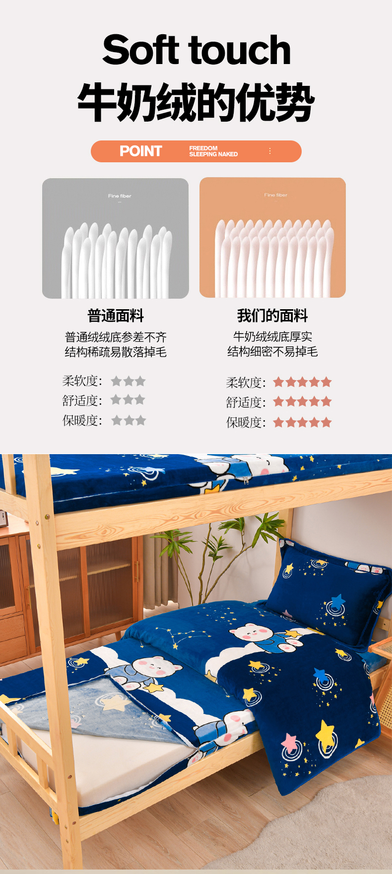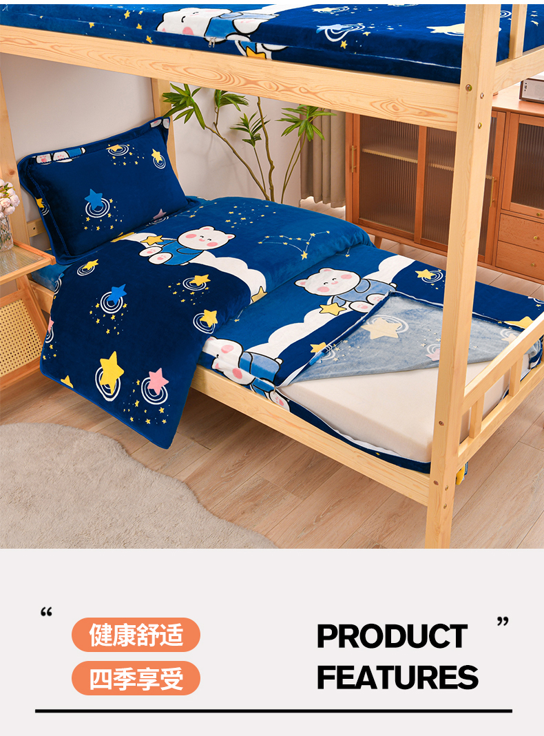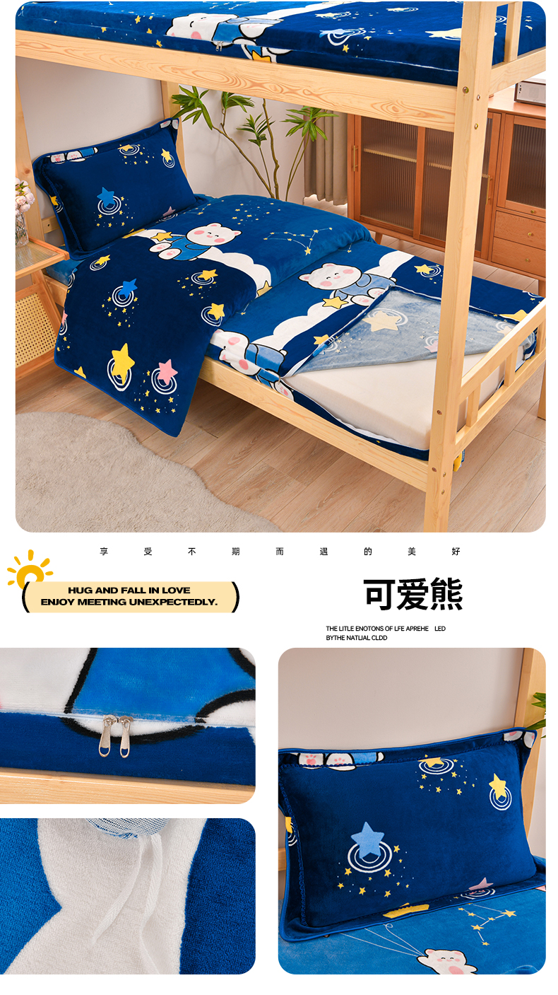 商品名称:居尚家纺 2025新款牛奶绒学生三件套床褥套床笠三件套 嘟嘟熊