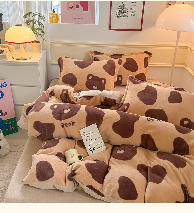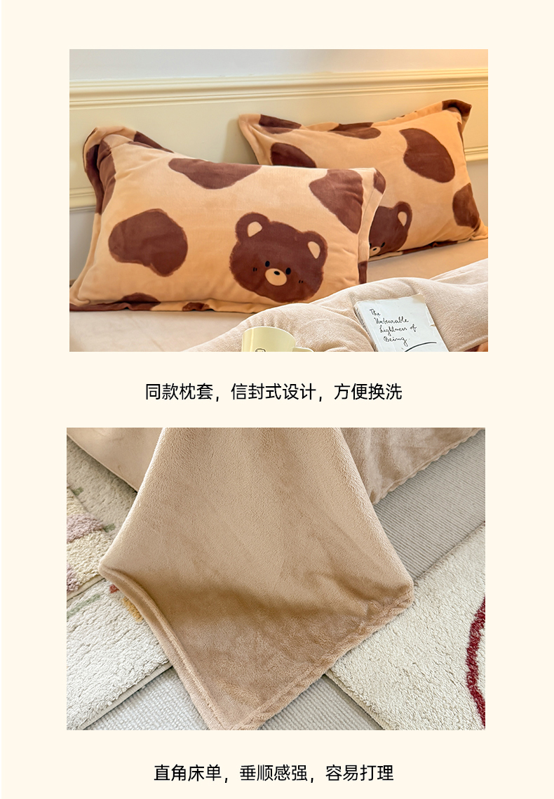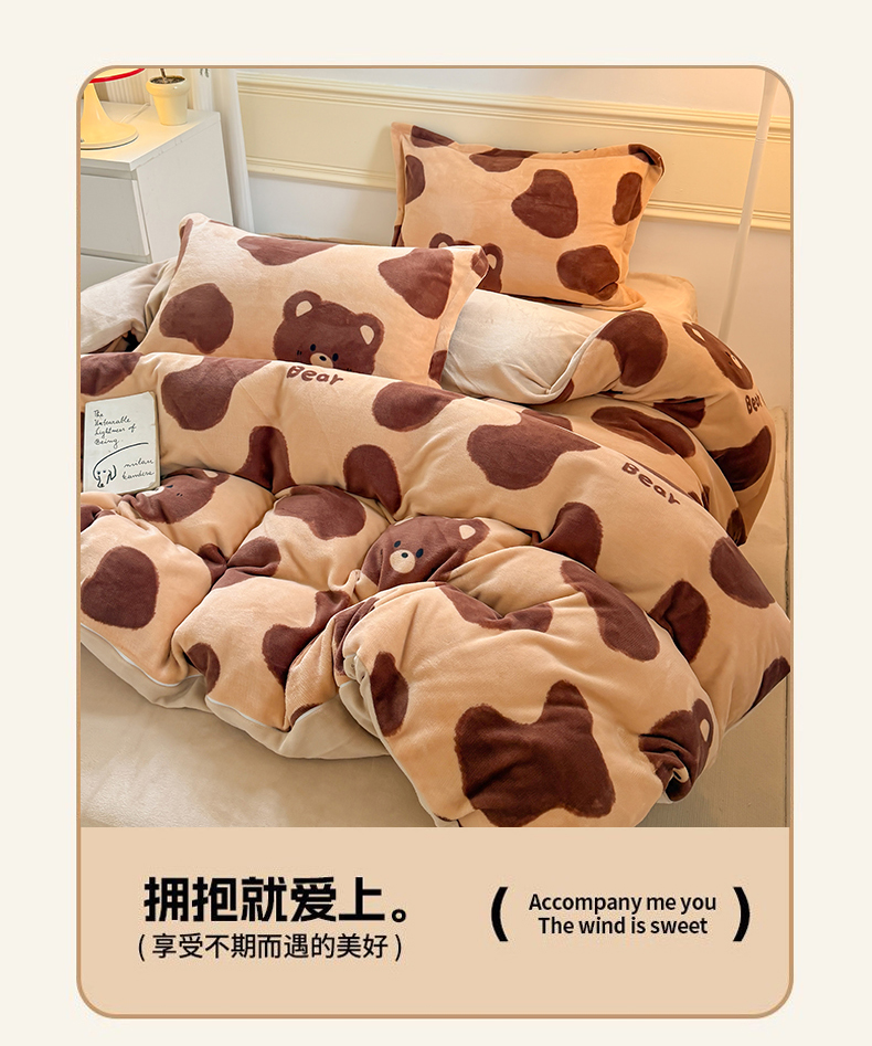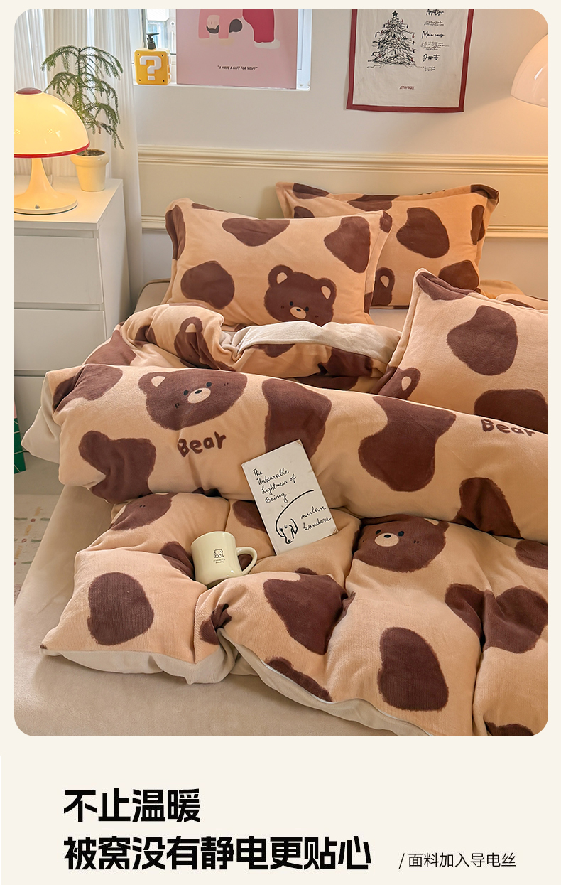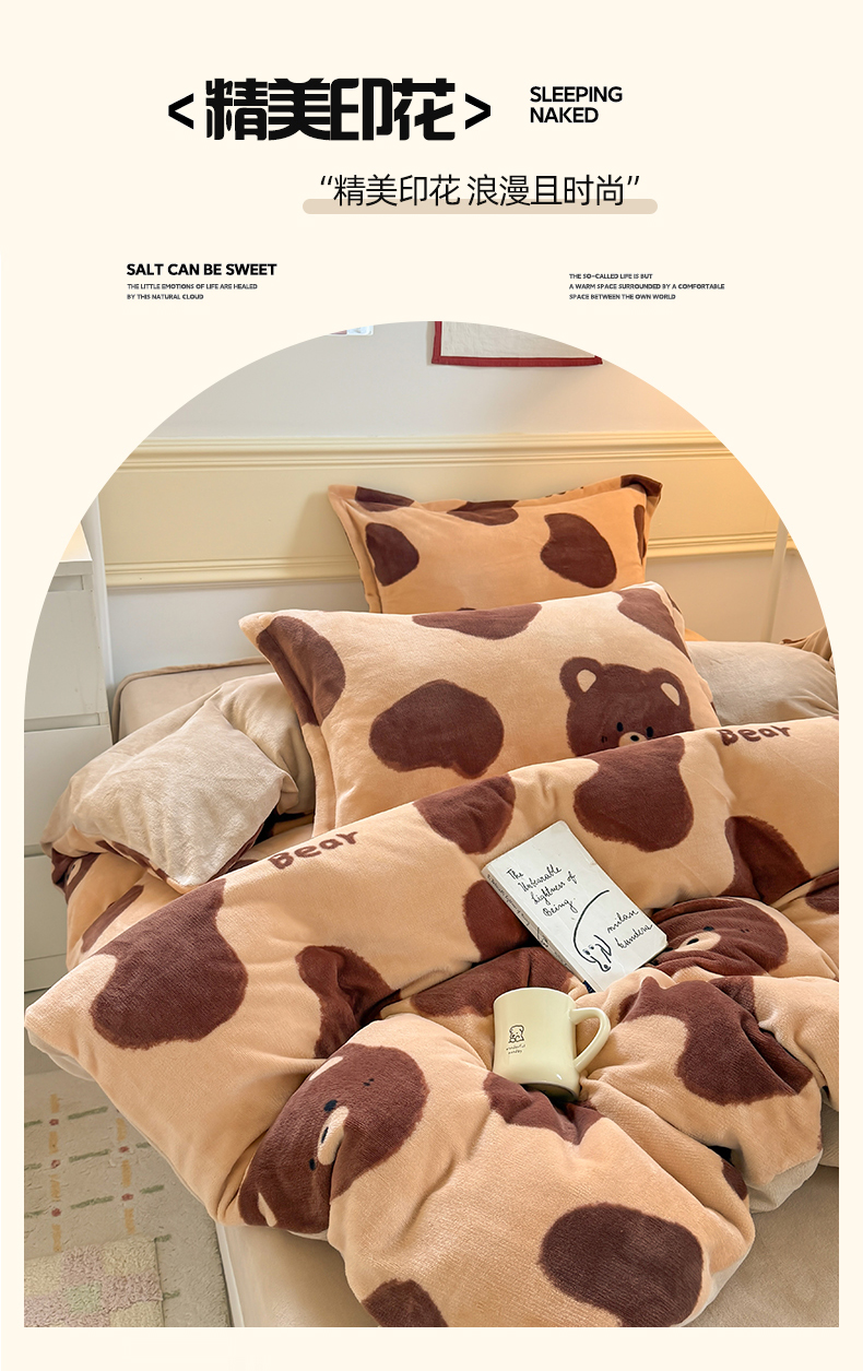 当前位置: 91家纺网 > 商品网购 > 床品套件 > 四件套 > 牛奶绒四件套 > 艾特你 2025新款小清新高克重加厚牛奶绒印花四件套--风格二小窝图 可可熊