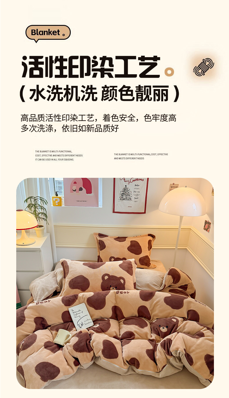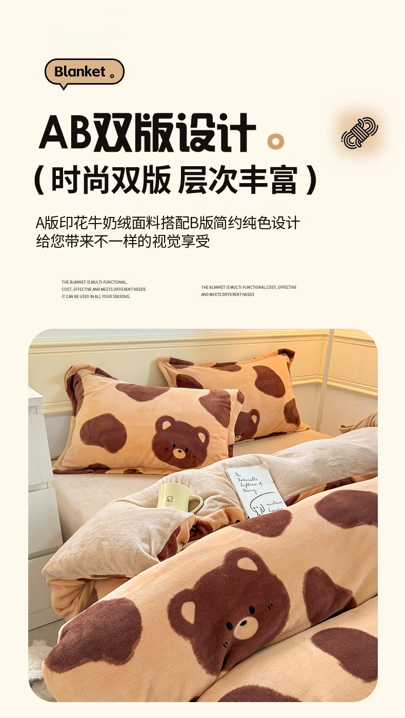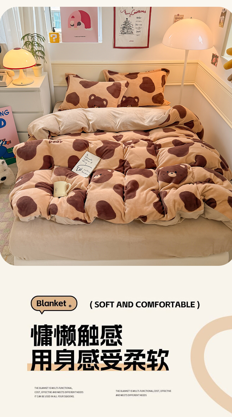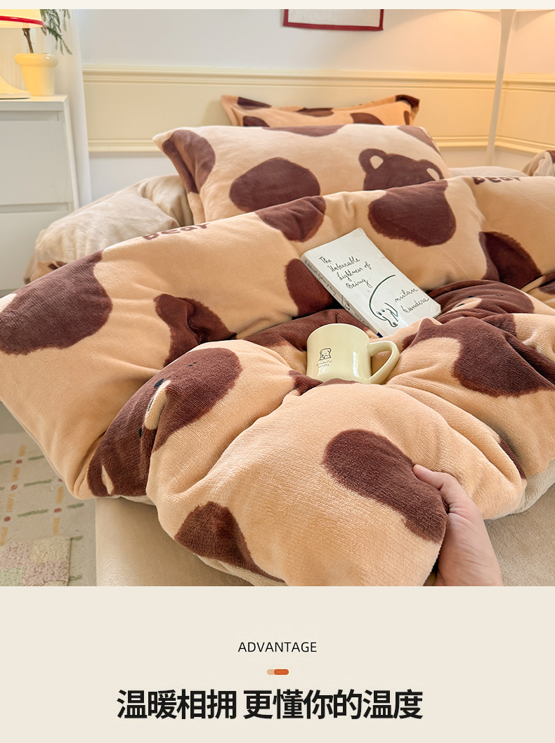 当前位置: 91家纺网 > 商品网购 > 床品套件 > 四件套 > 牛奶绒四件套 > 艾特你 2025新款小清新高克重加厚牛奶绒印花四件套--风格二小窝图 可可熊