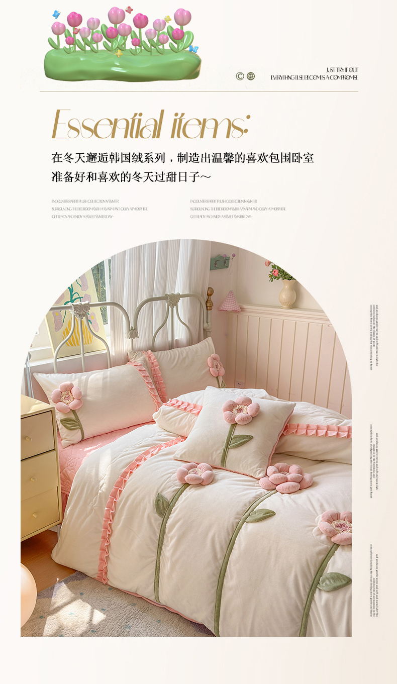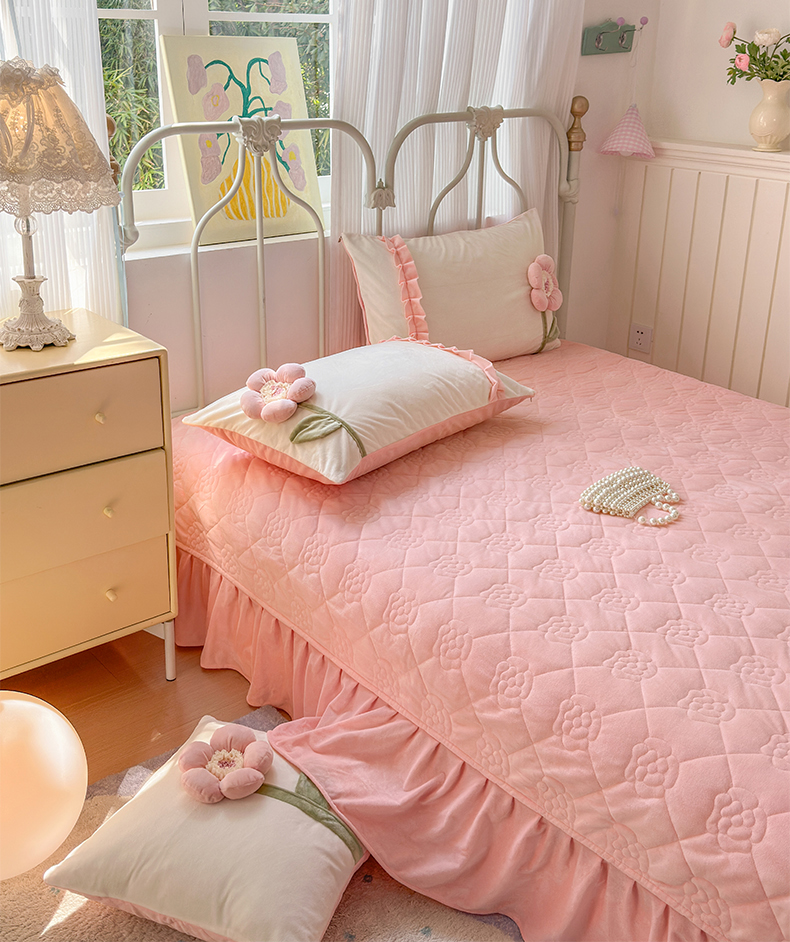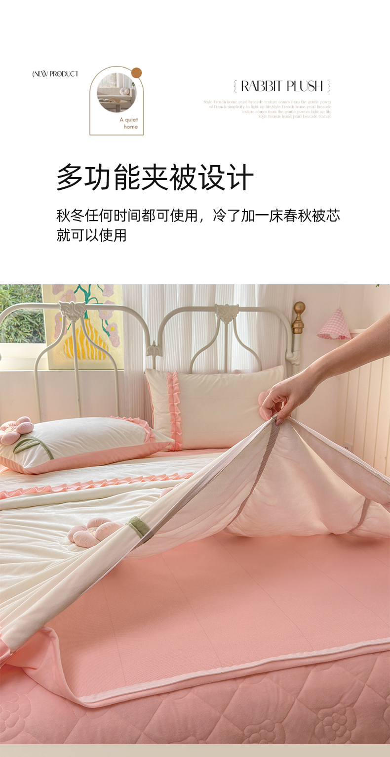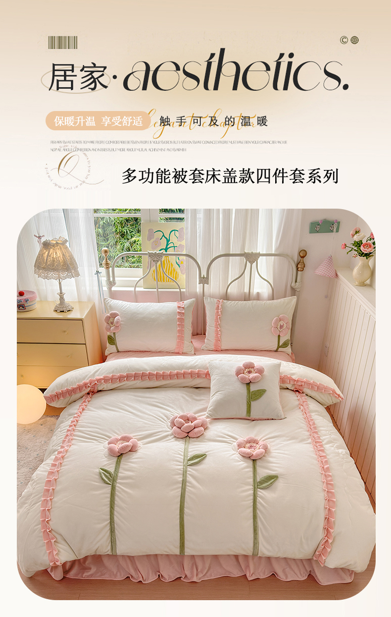 商品名称:淑女公社家纺 2025秋冬新款韩国绒多功能被套床盖款四件套-向阳花 向阳花 粉