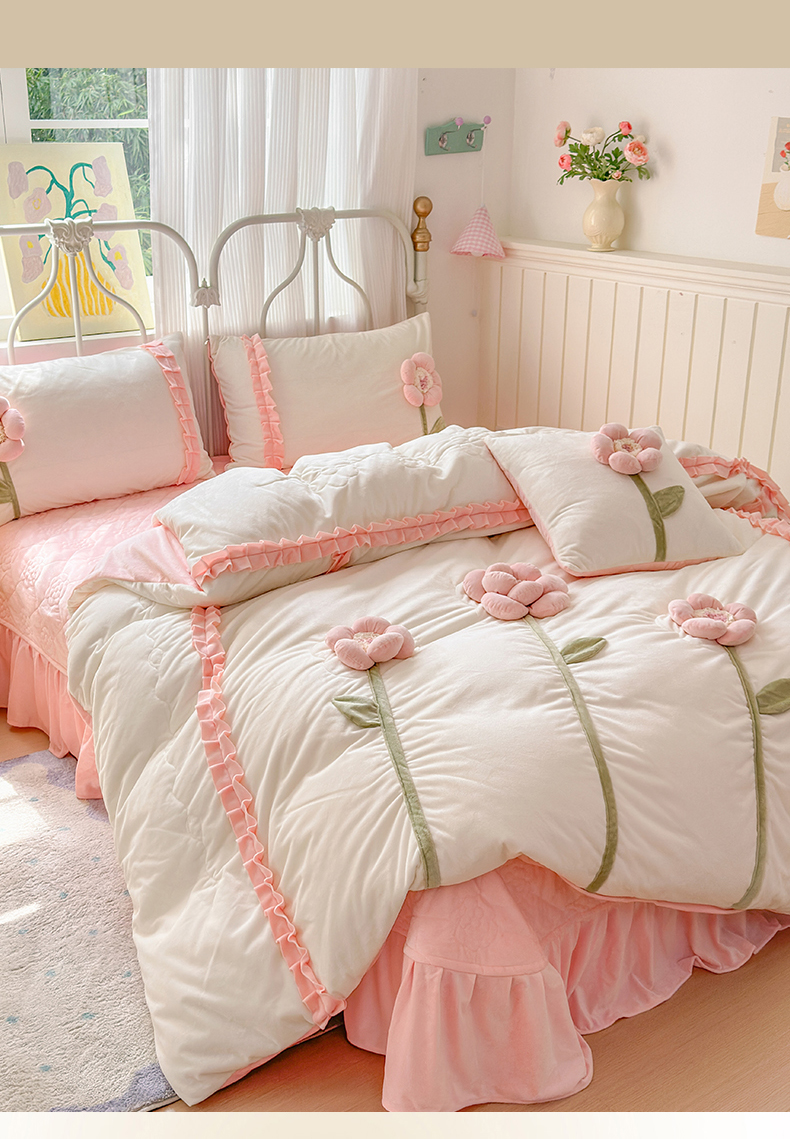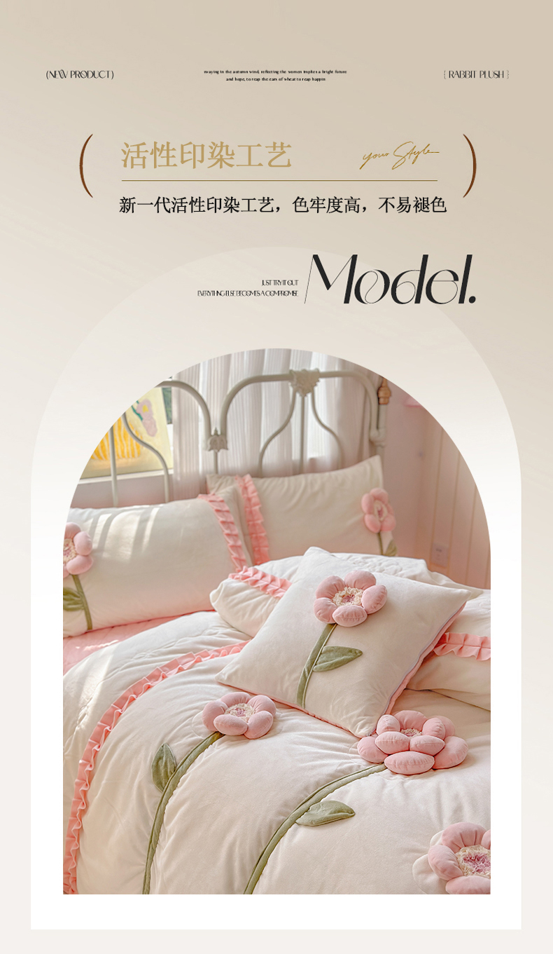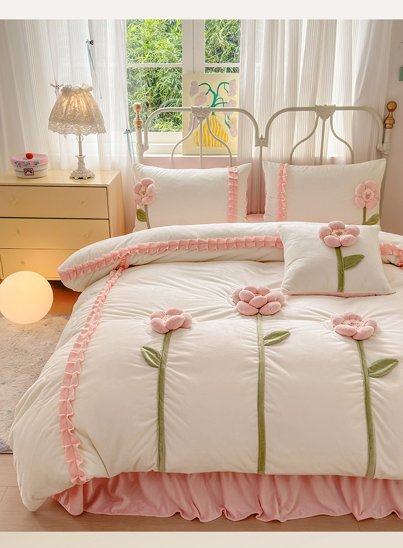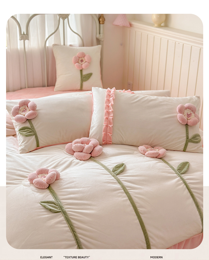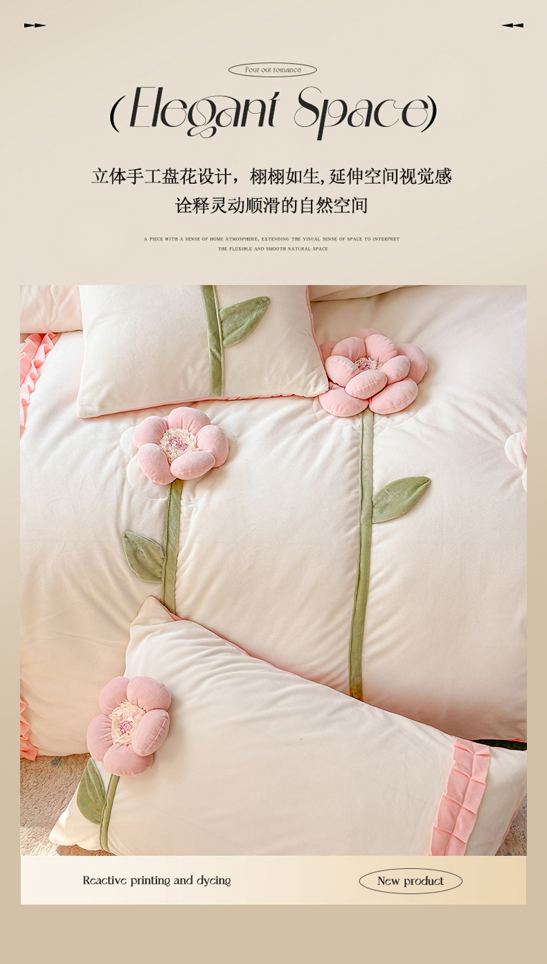商品名称:淑女公社家纺 2025秋冬新款韩国绒多功能被套床盖款四件套-向阳花 向阳花 粉