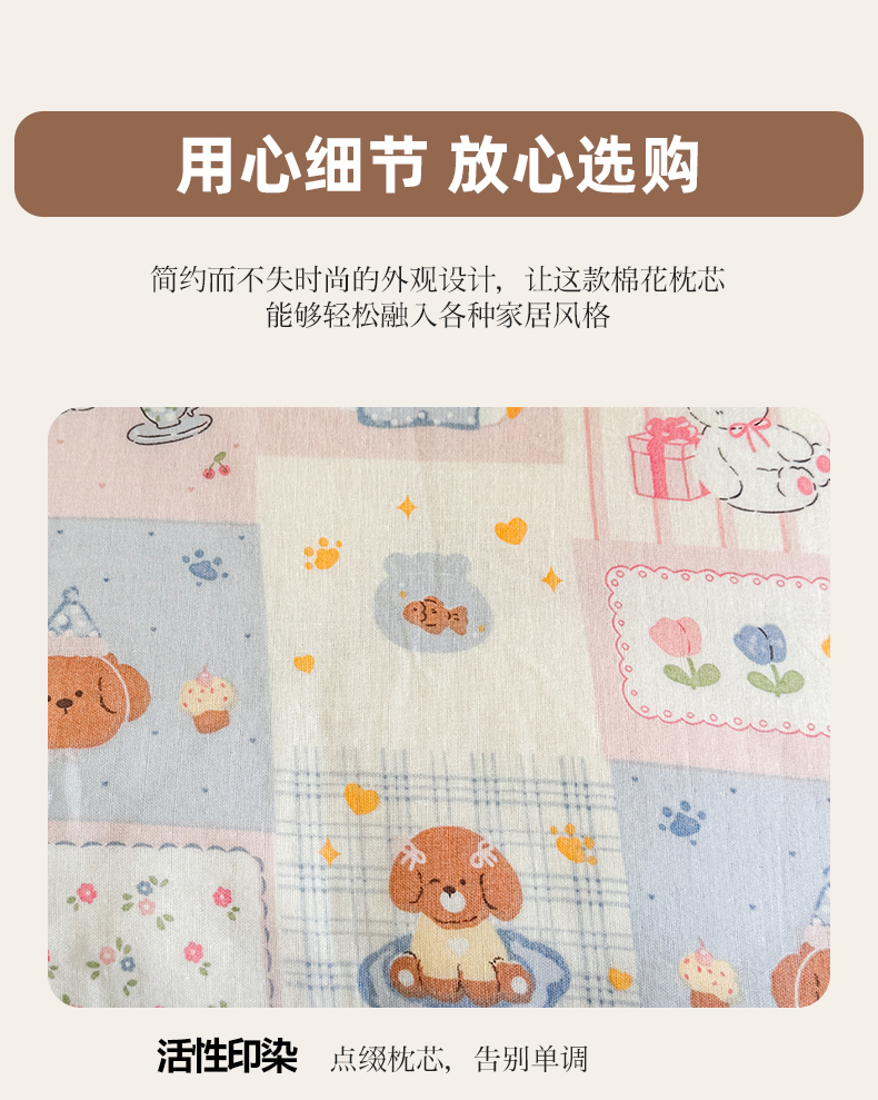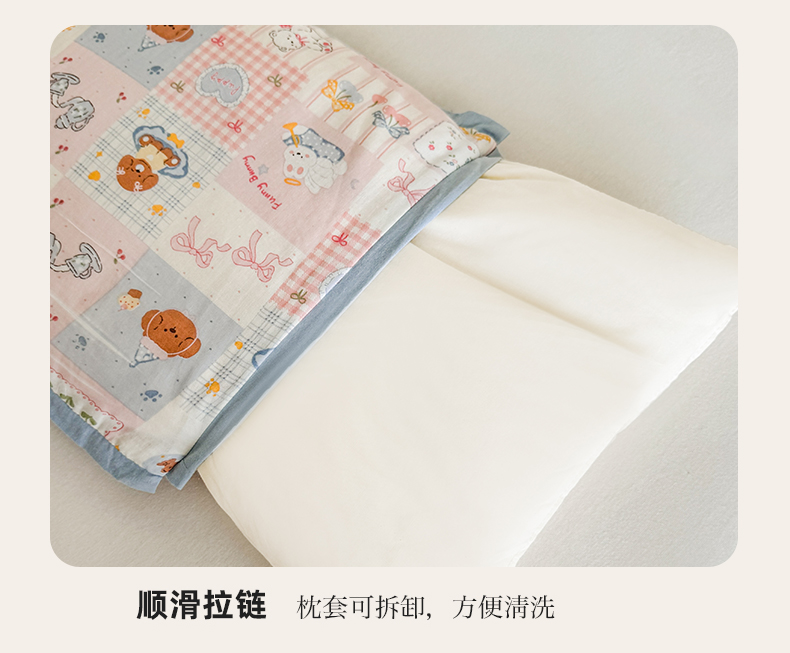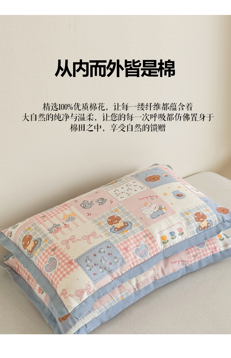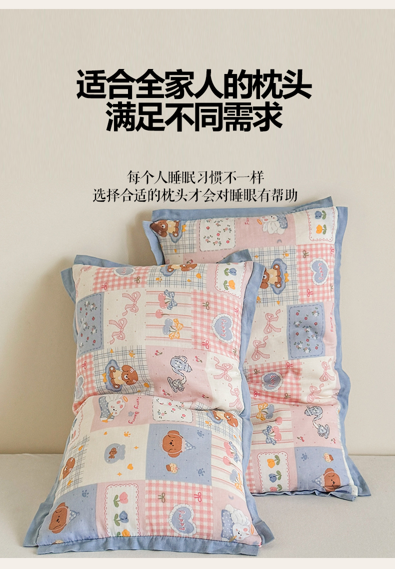 商品名称:贵夫人 2025新款卡通儿童100%纯棉花枕 枕头枕芯 萌宠格子铺儿童一对