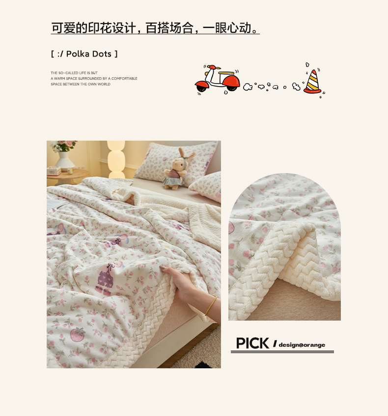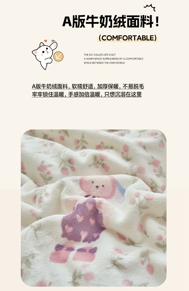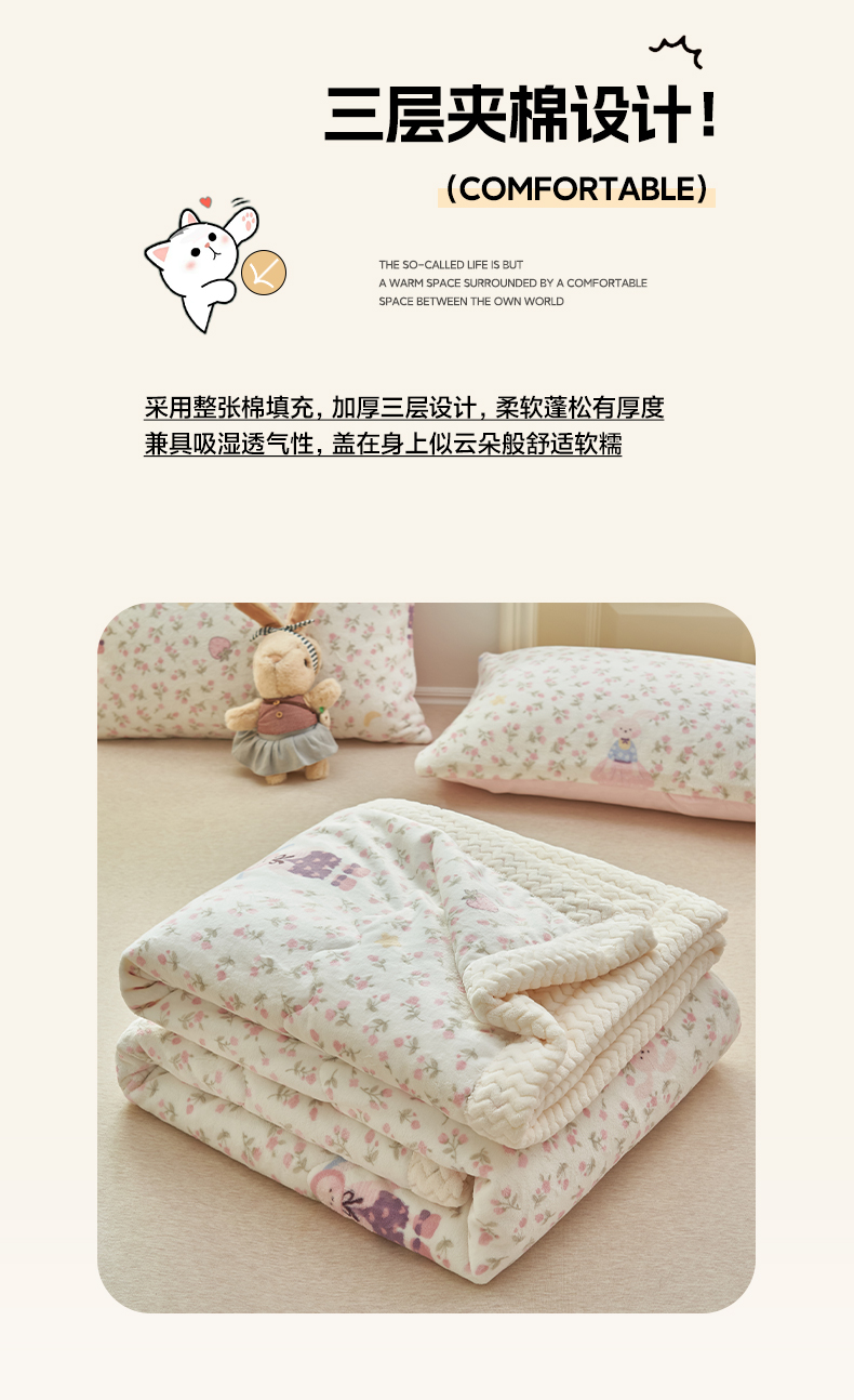 商品名称:晨曦家纺 2025新款加厚保暖牛奶绒贝贝绒三层夹棉毛毯可爱卡通 兔兔花园