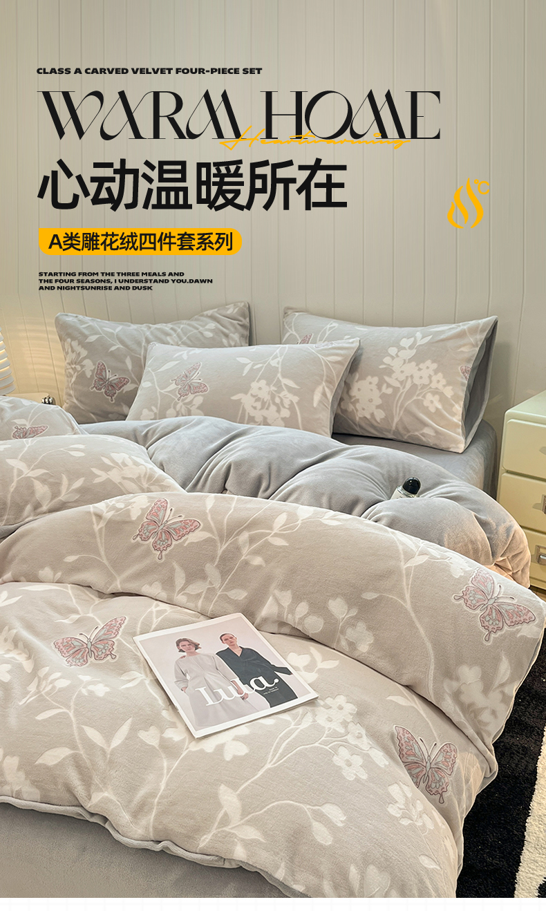 当前位置: 91家纺网 > 商品网购 > 床品套件 > 四件套 > 牛奶绒四件套 > 星座 2025新款牛奶绒雕花绒四件套 蝶栖花影