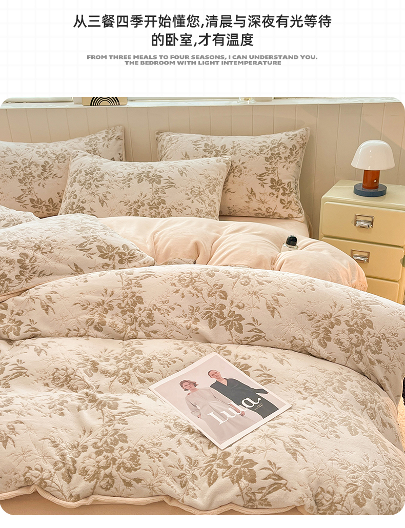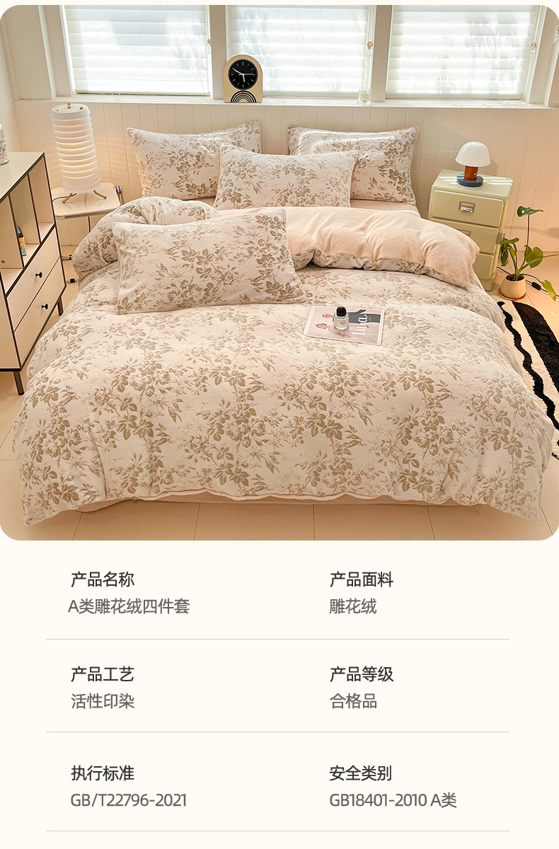 当前位置: 91家纺网 > 商品网购 > 床品套件 > 四件套 > 牛奶绒四件套 > 星座 2025新款牛奶绒雕花绒四件套 浅棕花叙