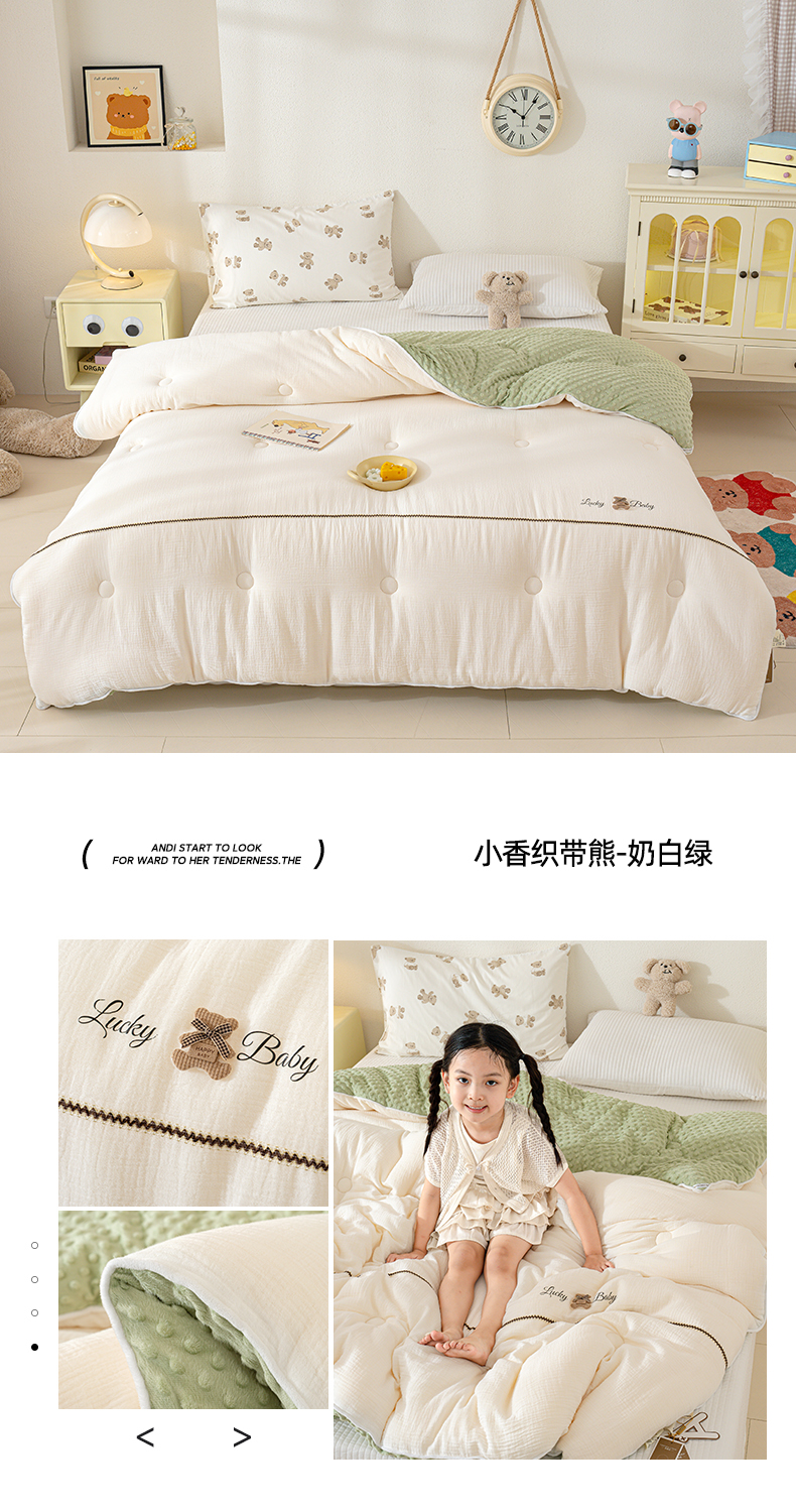 • 91家纺网 家纺一手货源 找家纺 (总)芯恋家居 2025新款小香风A类母婴级全棉双层纱宝宝绒豆豆被保暖四季被,小香织带熊-粉灰,小香织带熊-奶白绿,小香织带熊-雾霾灰,小香织带熊-浅紫灰,小香织带熊-蓝灰,小香织带熊-奶白蓝,小香织带熊-奶白咖,小香织带熊-奶白粉
