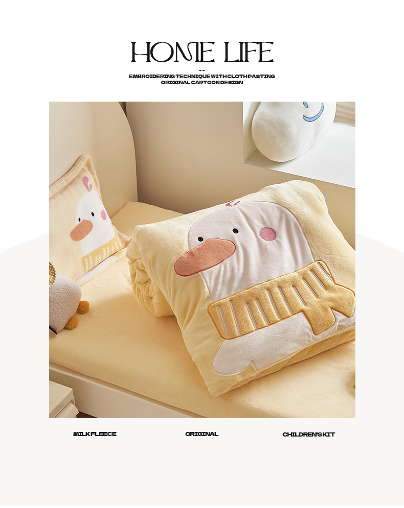荷马之梦 2025新款A类牛奶绒贴布绣原创卡通儿童套件幼儿园三件套-围住可爱系列 围巾小鸭