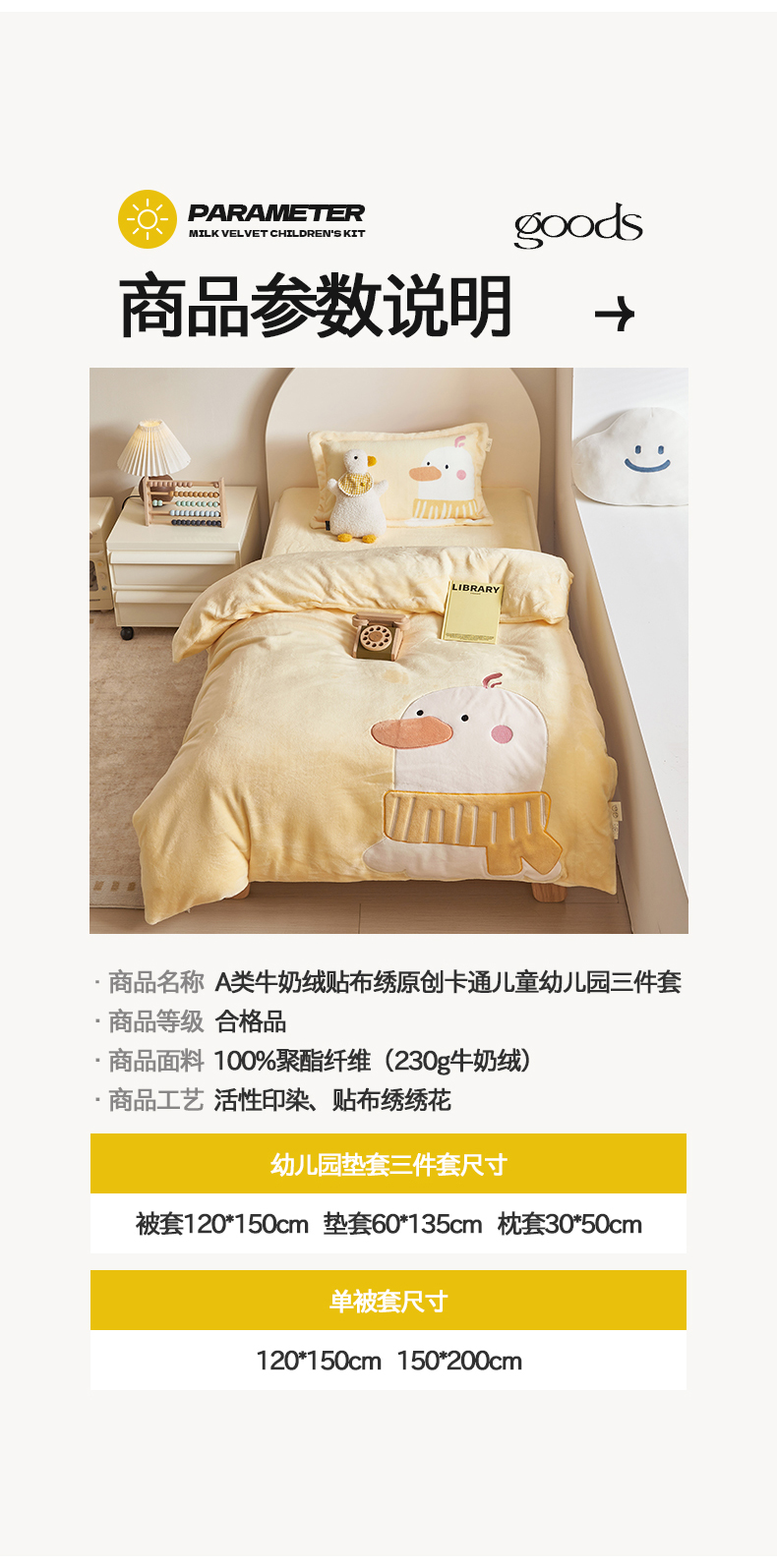 幼儿园垫套三件套(120x150cm被套+60x135cm垫套+30x50cm枕套)