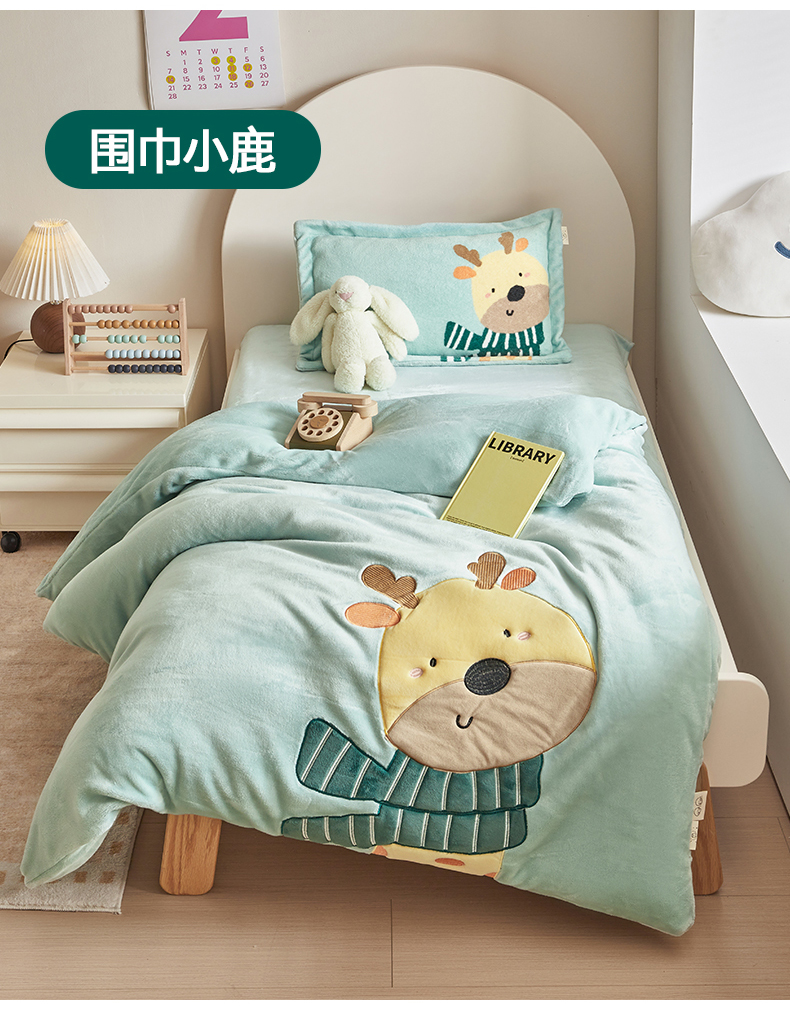 (总)荷马之梦 2025新款纯棉双层纱贴布绣卡通儿童被芯春秋被冬被被子被芯-围住可爱系列,围巾北极熊,围巾小鹿,围巾小兔,围巾小熊,围巾小鸭