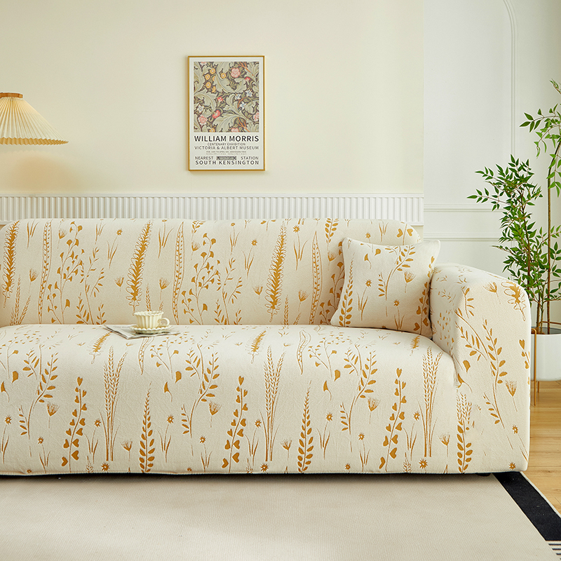 (总)丝绮鹿 2025新款仿麻雪尼尔松紧款沙发套-流景(贵妃图),流景-薄雾黄,流景-宝石绿,流景-黑棕色,流景-落日橘,流景-星空灰