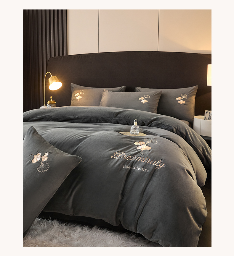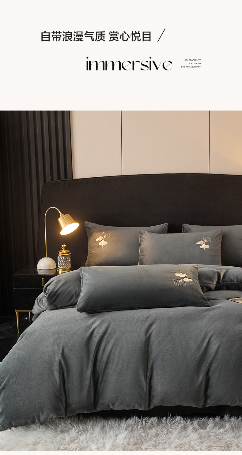 商品名称:如一 2025新款水晶绒双拼刺绣牛奶绒单品被套 银杏-高级灰