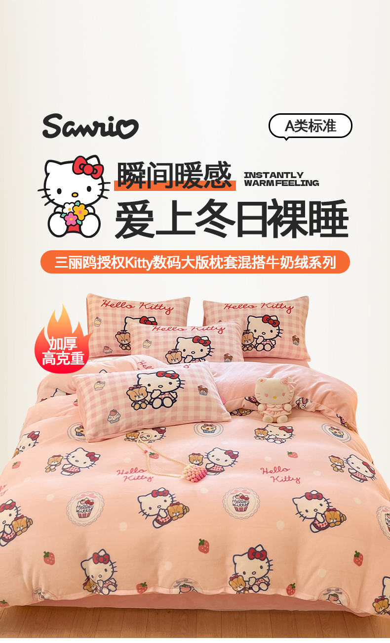 当前位置: 91家纺网 > 商品网购 > 床品套件 > 四件套 > 牛奶绒四件套 > 金爱家 2025新品正版三丽鸥授权Kitty数码大版枕套混搭卡通加厚高克重牛奶绒系列四件 绒三丽鸥-混搭粉甜心KT