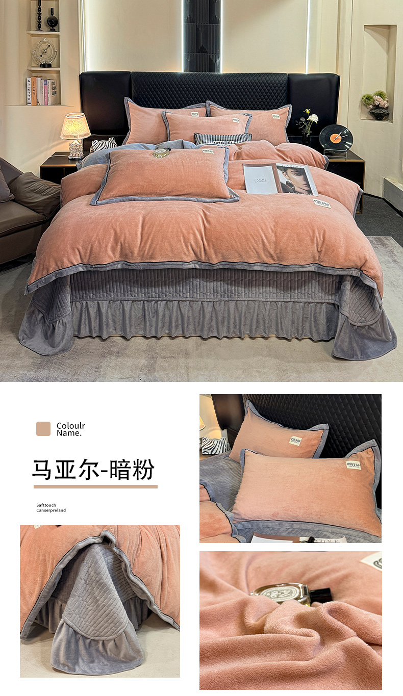 商品名称:芷卧 2025新款高克重牛奶绒四件套床盖款 马亚尔-暗粉