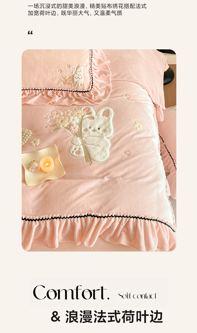商品名称:(总)民新家纺 2025新款牛奶绒毛巾绣贴布绣花四件套