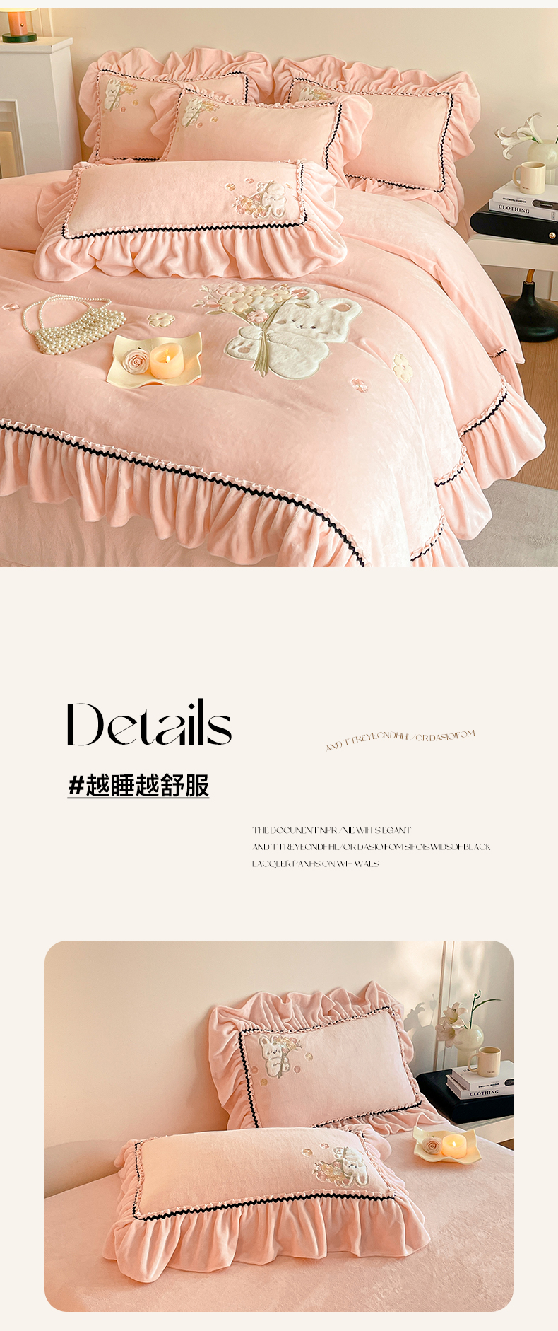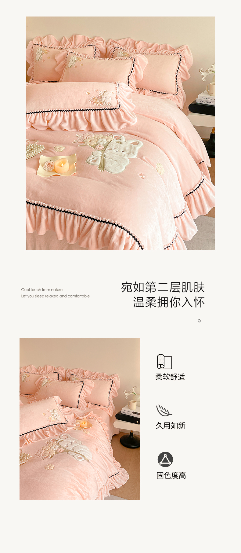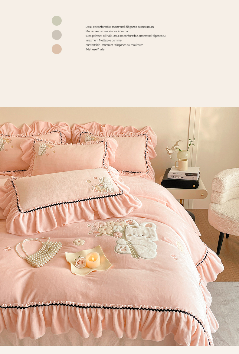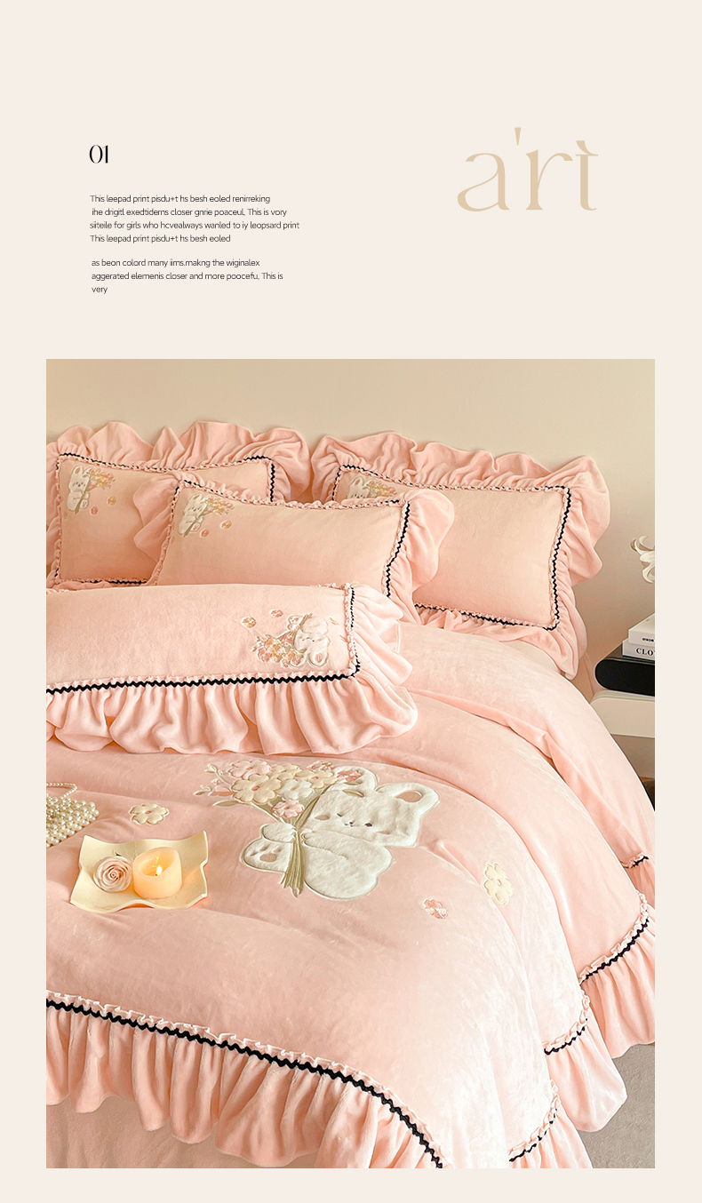 商品名称:民新家纺 2025新款牛奶绒毛巾绣贴布绣花四件套 梦境-樱花粉