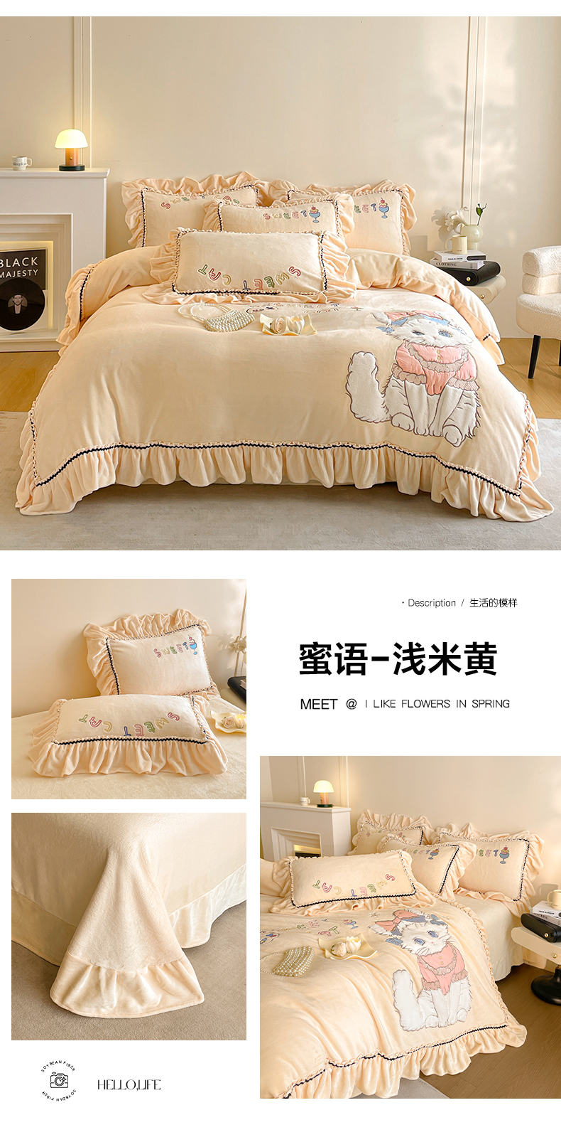 (总)民新家纺 2025新款牛奶绒刺绣花边四件套-挚爱,挚爱-浅紫,挚爱-浅蓝,挚爱-浅米黄,挚爱-青柠绿,挚爱-樱花粉