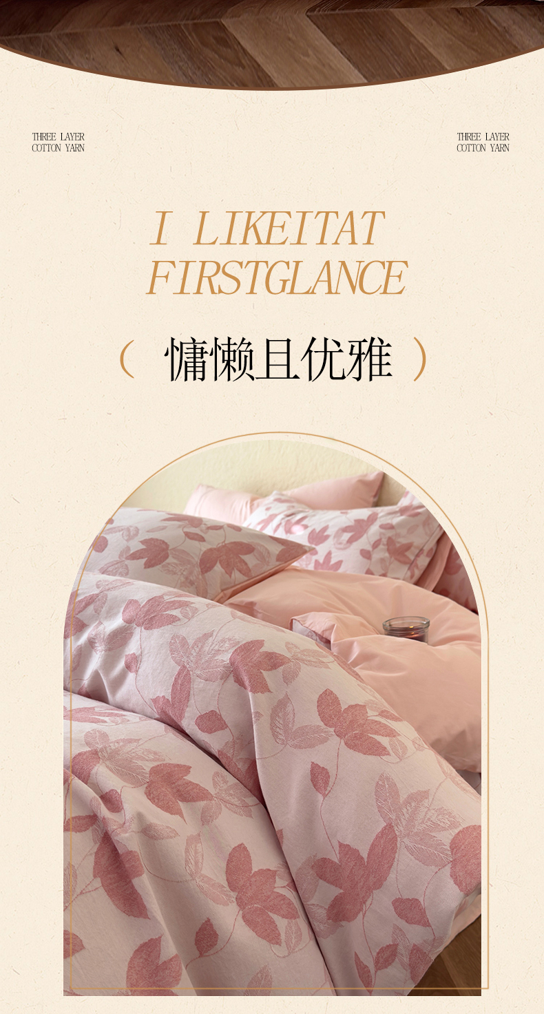 琪格格纺织 2025新款全棉A类色织三层纱提花四件套 三层纱 枫韵-柔玉
