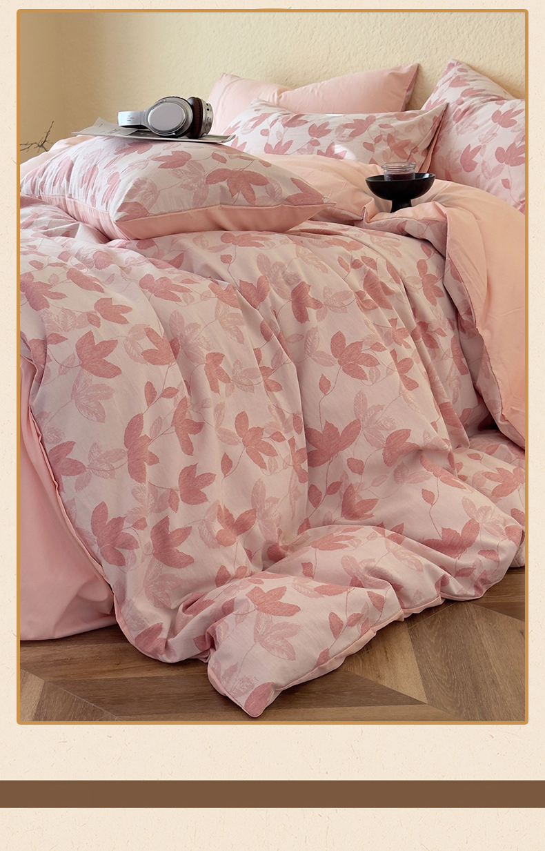 商品名称:琪格格纺织 2025新款全棉A类色织三层纱提花四件套 三层纱 枫韵-柔玉