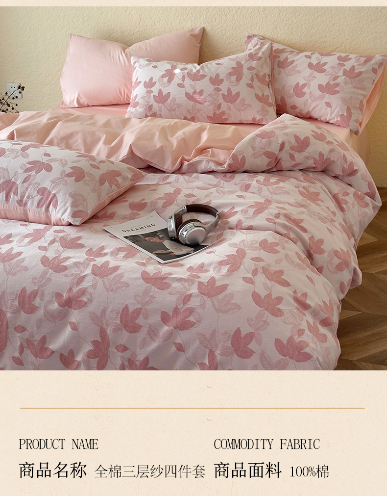 (总)琪格格纺织 2026新款60s纯棉加厚三层纱系列四件套,三层纱 海纳公园,三层纱 莫克,三层纱 沁绿曲,三层纱 至尊,三层纱 爱在春秋-粉,三层纱 爱在春秋-灰,三层纱 爱在春秋-绿,三层纱 芳草 粉玉,三层纱 芳草 浅灰,三层纱 芳草浅绿,三层纱 枫韵-咖,三层纱 枫韵-柔玉,三层纱 枫韵-紫,三层纱 胧月-粉,三层纱 玫瑰锦簇,三层纱 莫奈花园-粉,三层纱 唐顿庄园-绿,三层纱 叶舞,三层纱 叶之韵味-灰