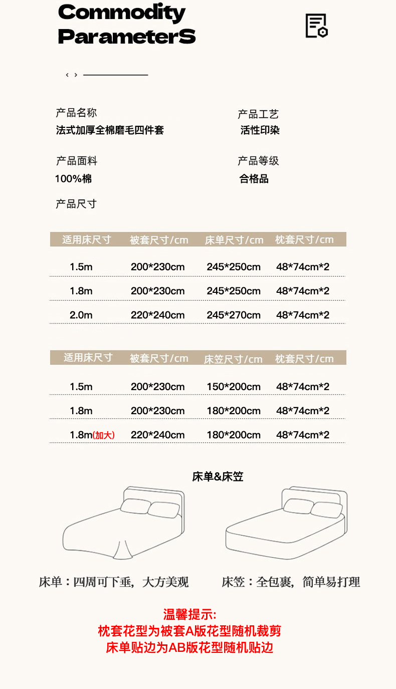 【床笠款】1.8四件套-被套200x230 | ¥150.00 |