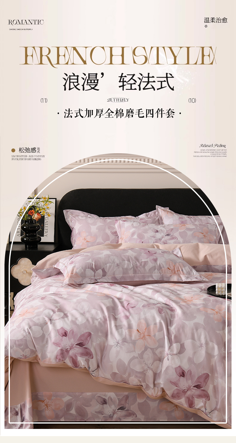 当前位置: 91家纺网 > 商品网购 > 床品套件 > 四件套 > 全棉普通四件套 > 金昱纺 2025新款法式加厚全棉纯棉磨毛四件套碧影-粉