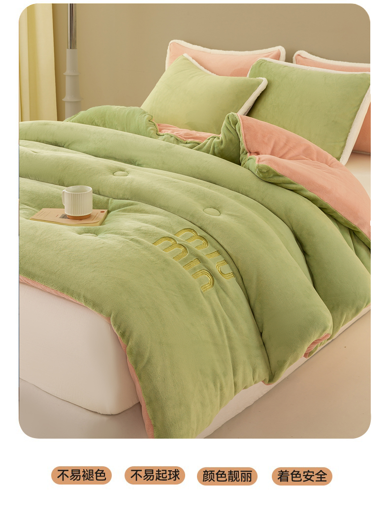 商品名称:梦初语 2025新款牛奶绒被子冬被冬季加厚保暖棉被宿舍单人被芯2025新款被褥(热款产品) min-绿