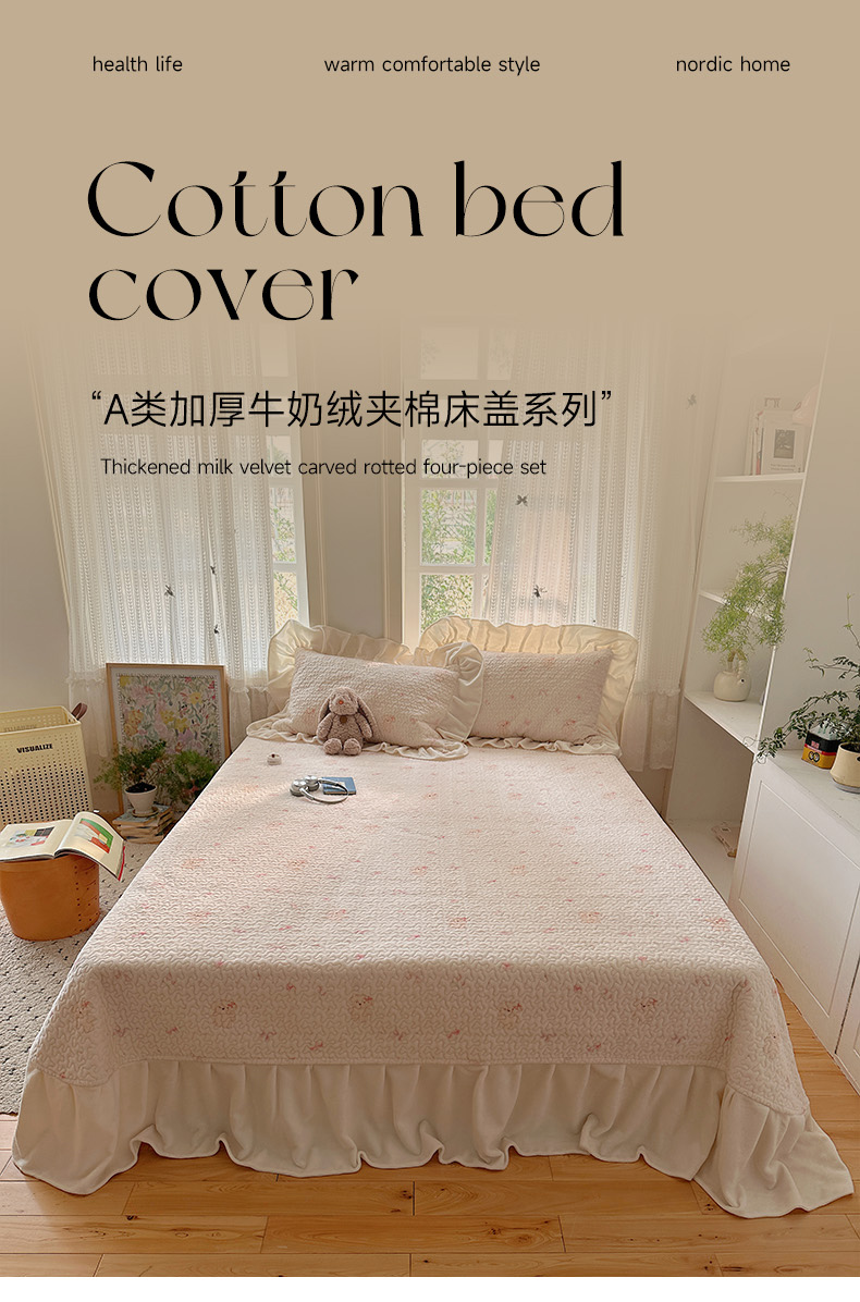 (总)红嘴企鹅 2025新款花边加厚牛奶绒单品床盖单件床盖三件套,波点狗,波点猫,大力,蛋糕狗,点心,蝶梦,动物乐园,蝴蝶狗狗,可爱比熊,萌萌熊,梦幻小熊,摩卡熊,奶油狗,平安猫,棋盘狗,少女猫咪,生日Party,圣诞老人,圣诞猫,淘气狗,小星甜点,星星乐园,星云小熊,羞羞猫,字母熊