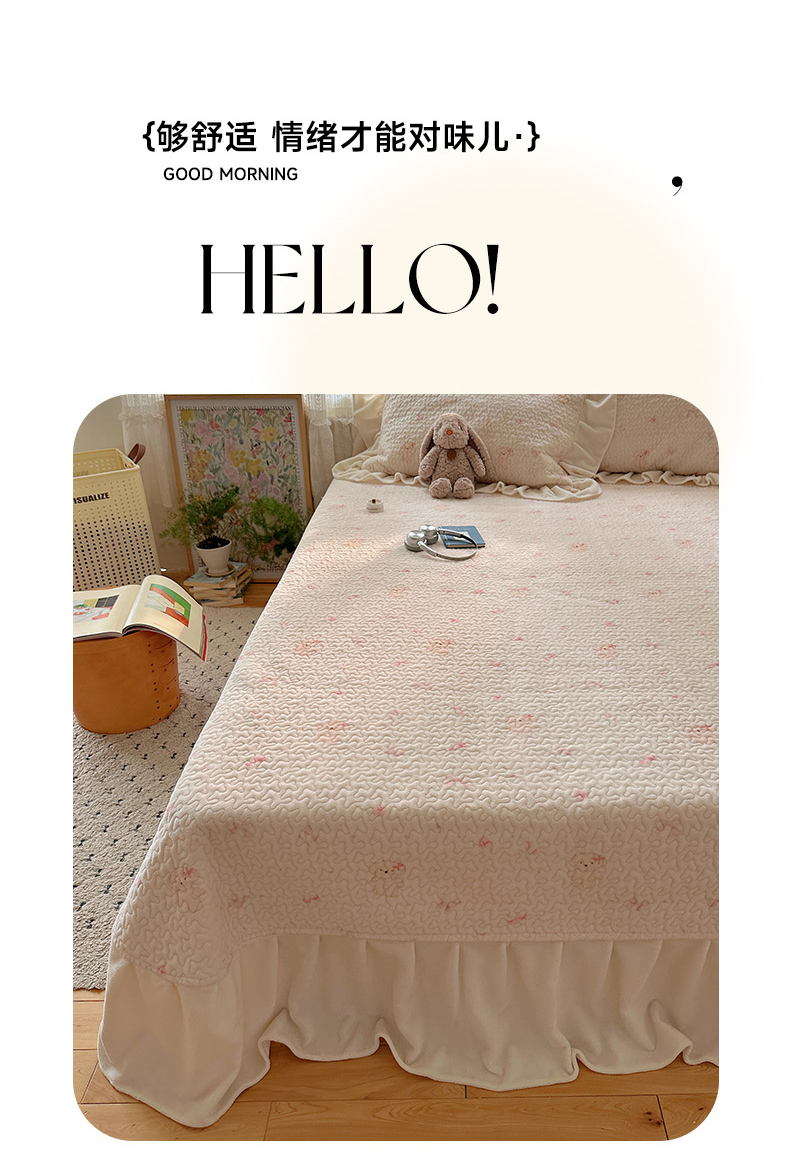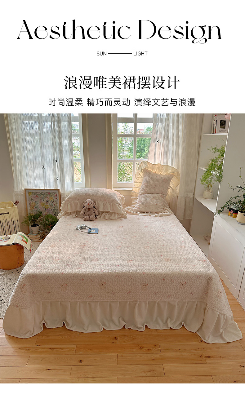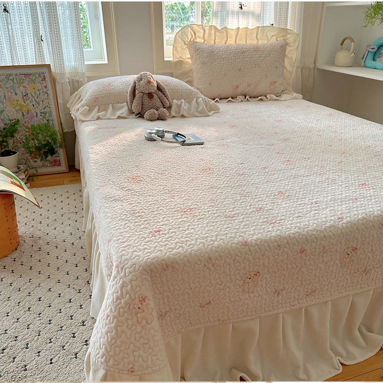 红嘴企鹅 2025新款花边加厚牛奶绒单品床盖单件床盖三件套 可爱比熊