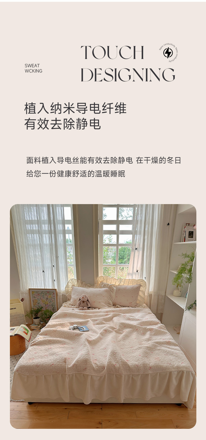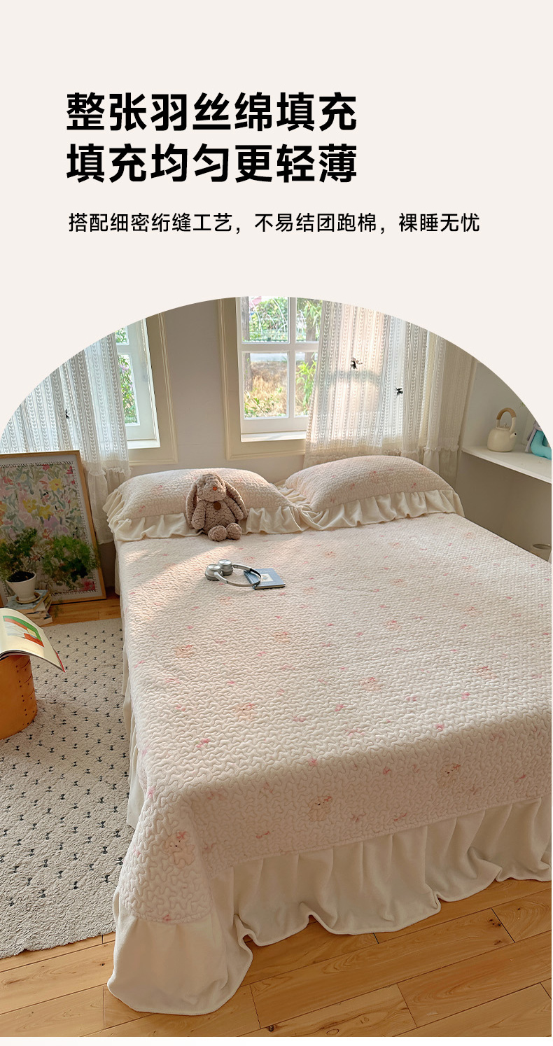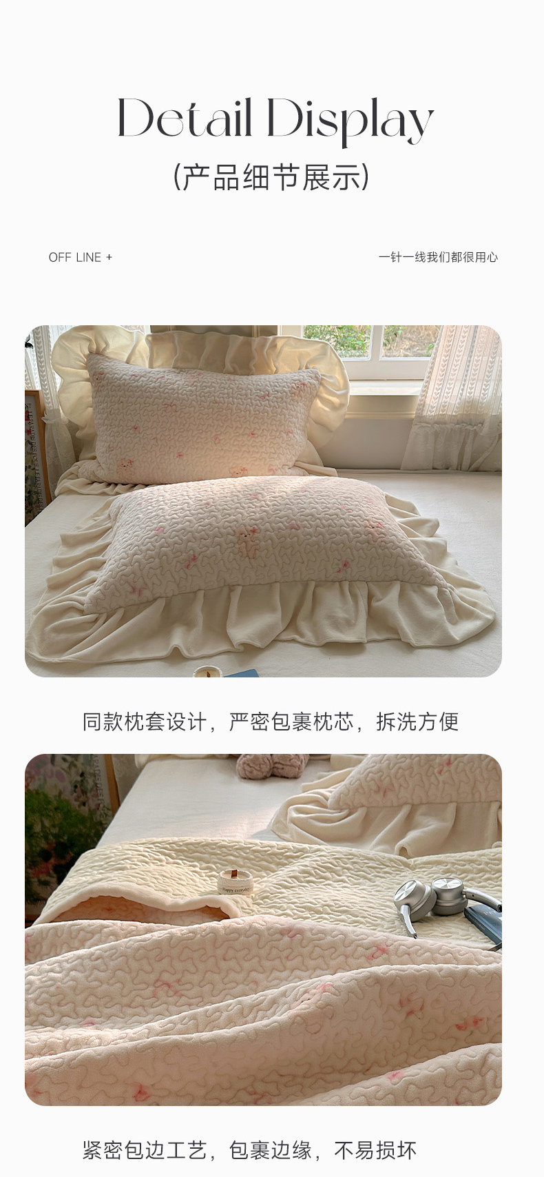 商品名称:红嘴企鹅 2025新款花边加厚牛奶绒单品床盖单件床盖三件套 可爱比熊