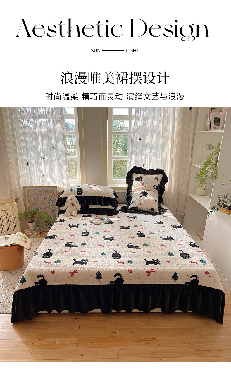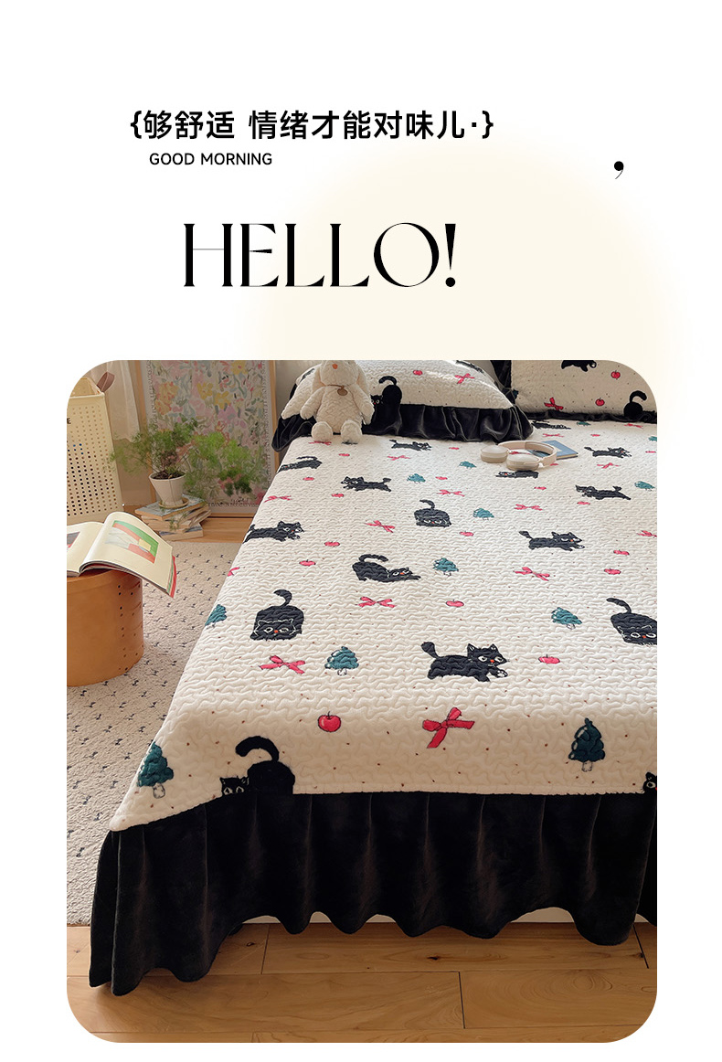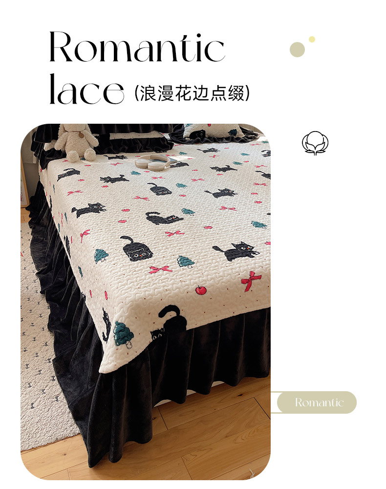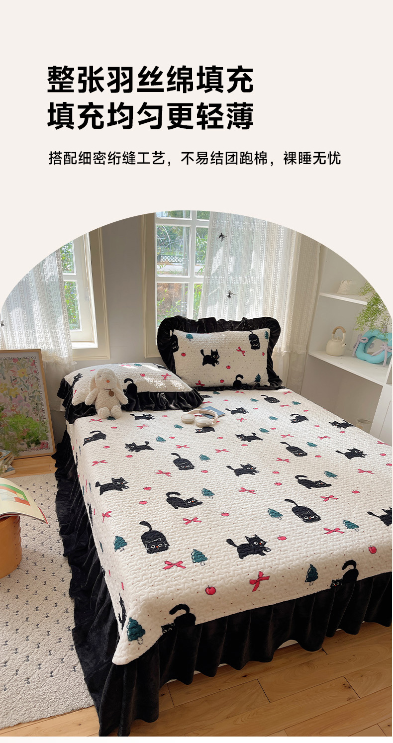 商品名称:红嘴企鹅 2025新款花边加厚牛奶绒单品床盖单件床盖三件套 圣诞猫