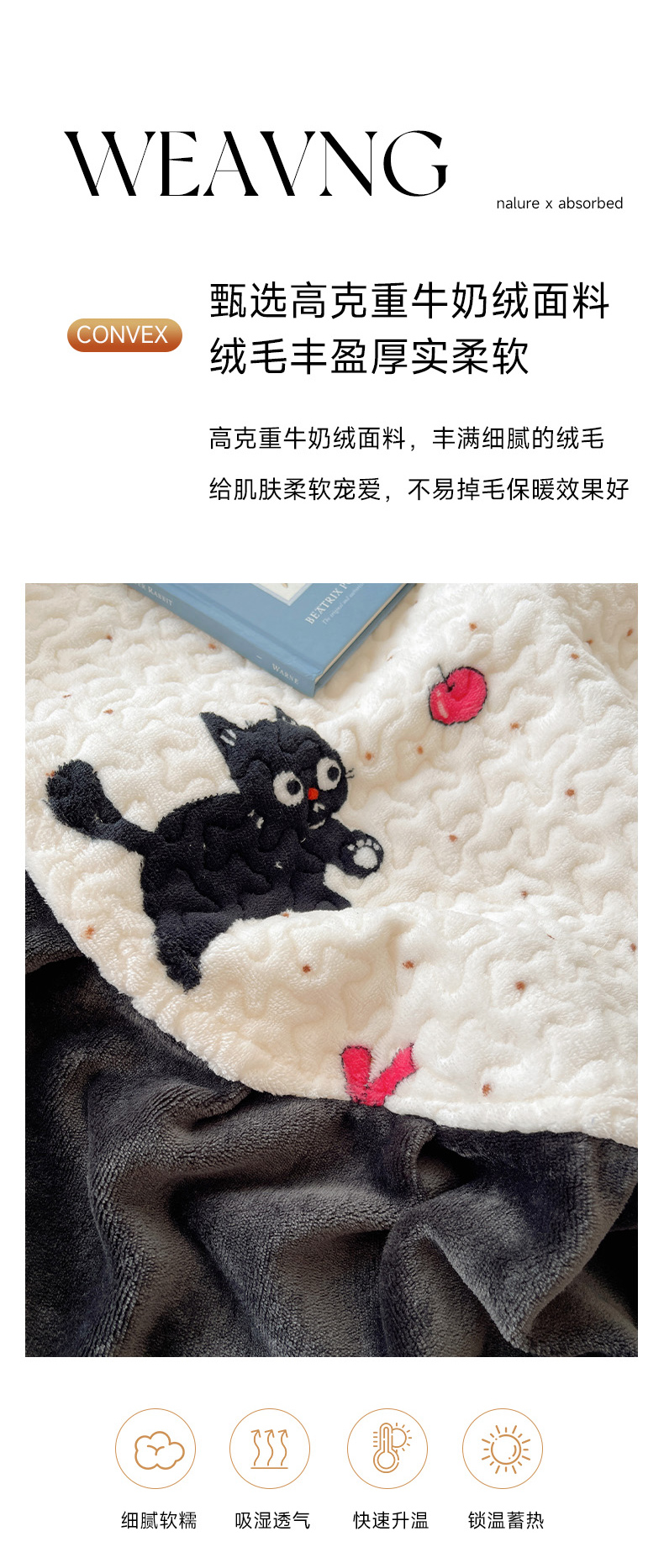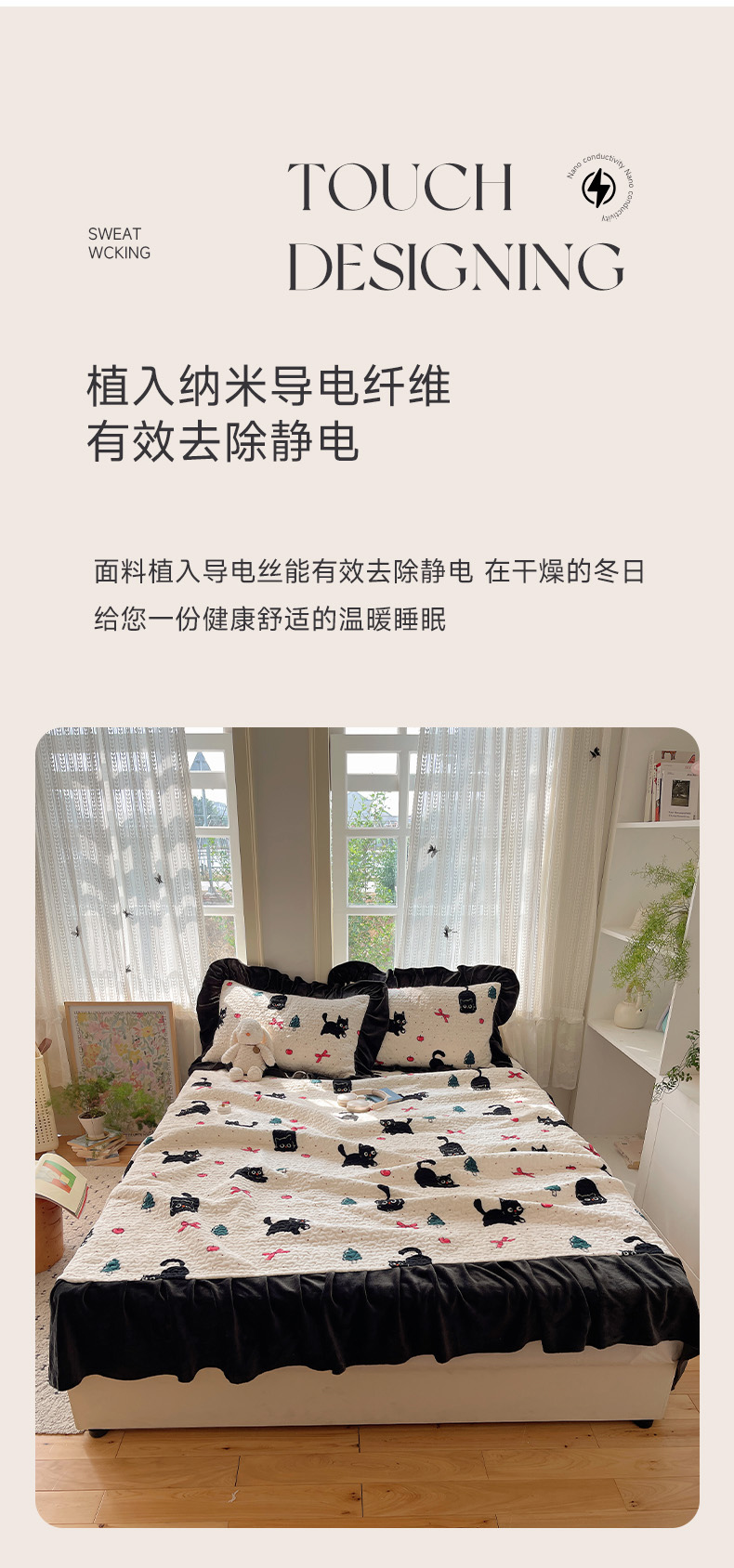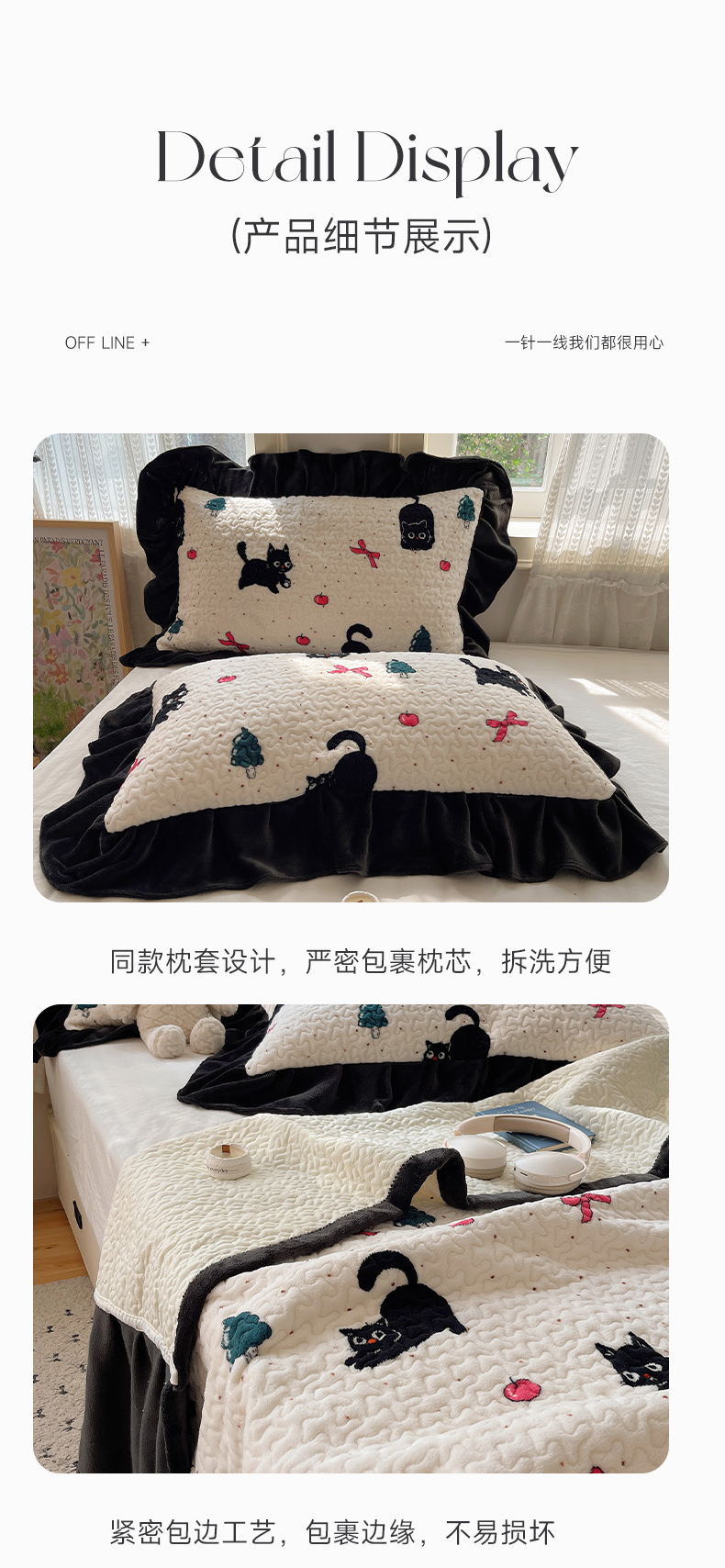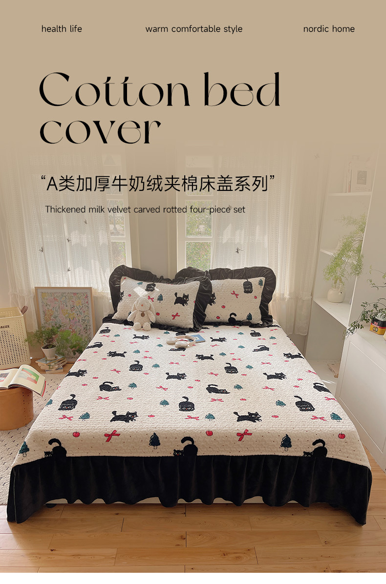 商品名称:红嘴企鹅 2025新款花边加厚牛奶绒单品床盖单件床盖三件套 圣诞猫