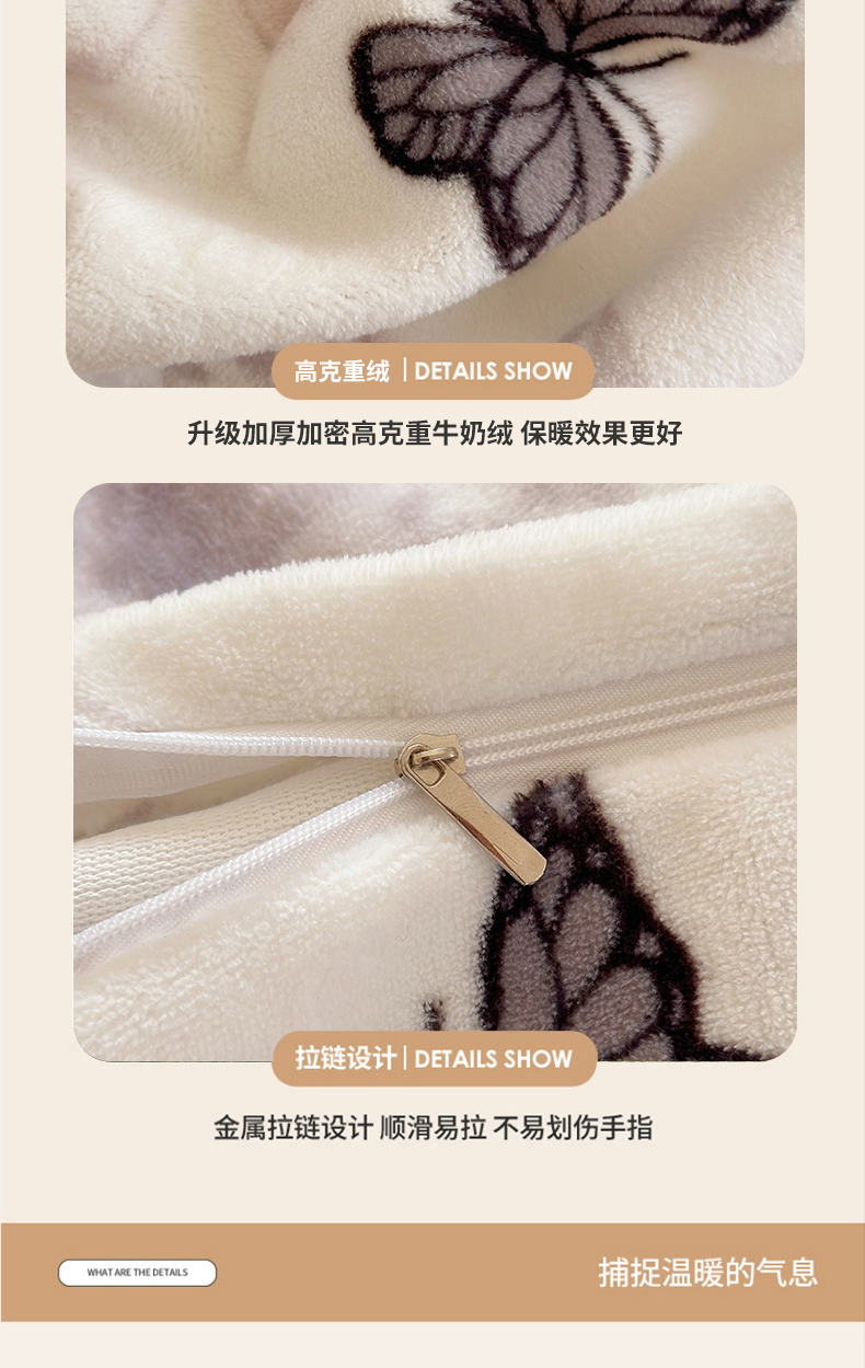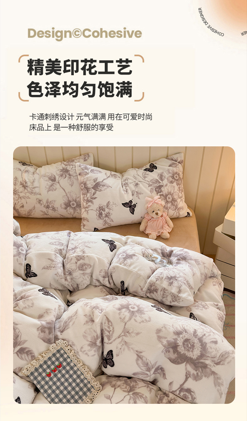 丽美人家纺 2025新款印花双面加厚绒高克重牛奶绒被罩单品被套单件被套 水墨花蝴蝶
