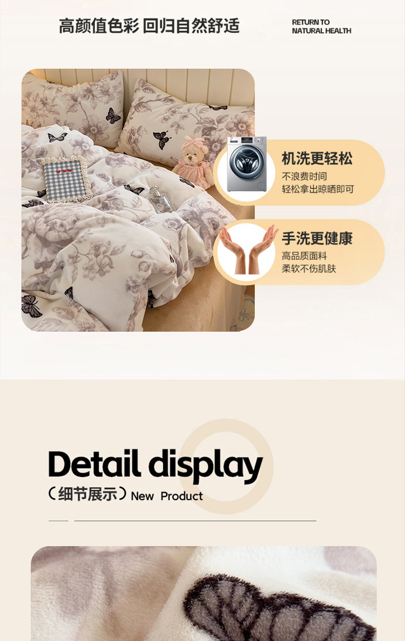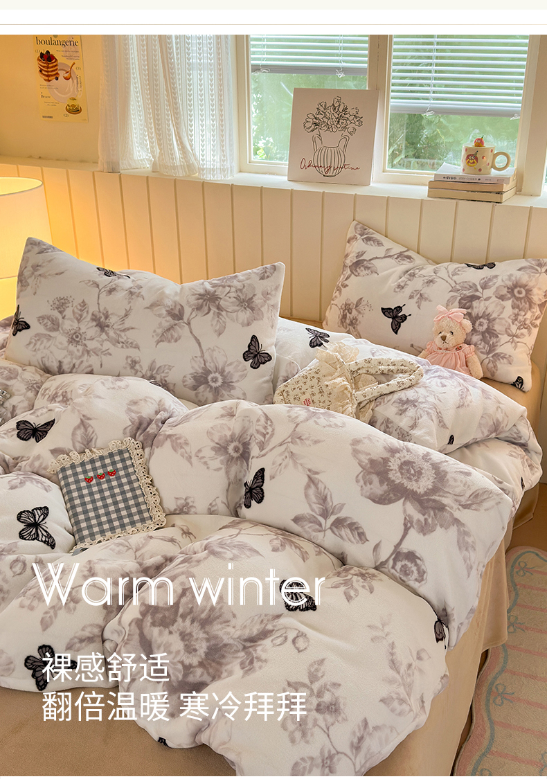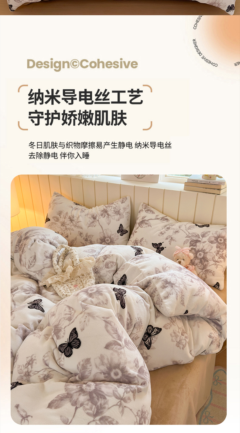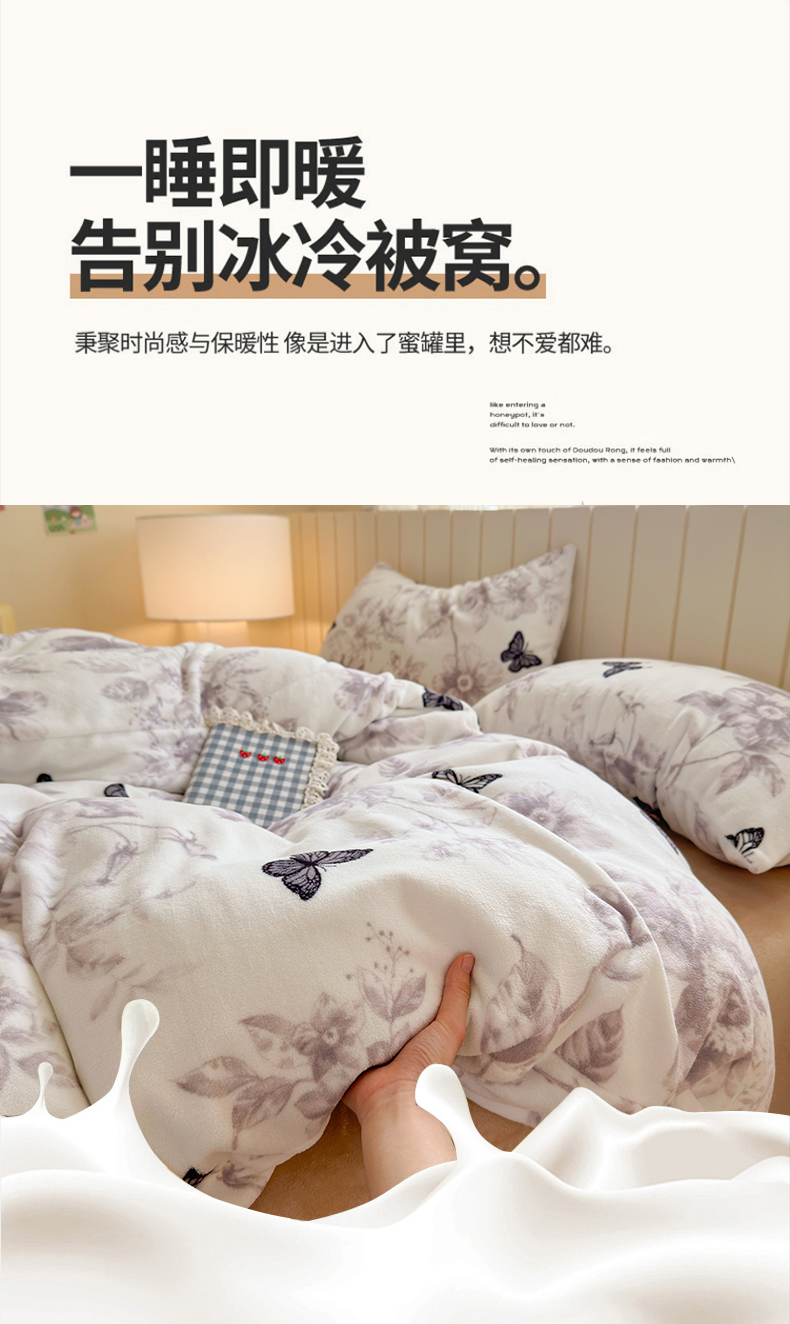 • 91家纺网 家纺一手货源 找家纺 丽美人家纺 2025新款印花双面加厚绒高克重牛奶绒被罩单品被套单件被套 水墨花蝴蝶