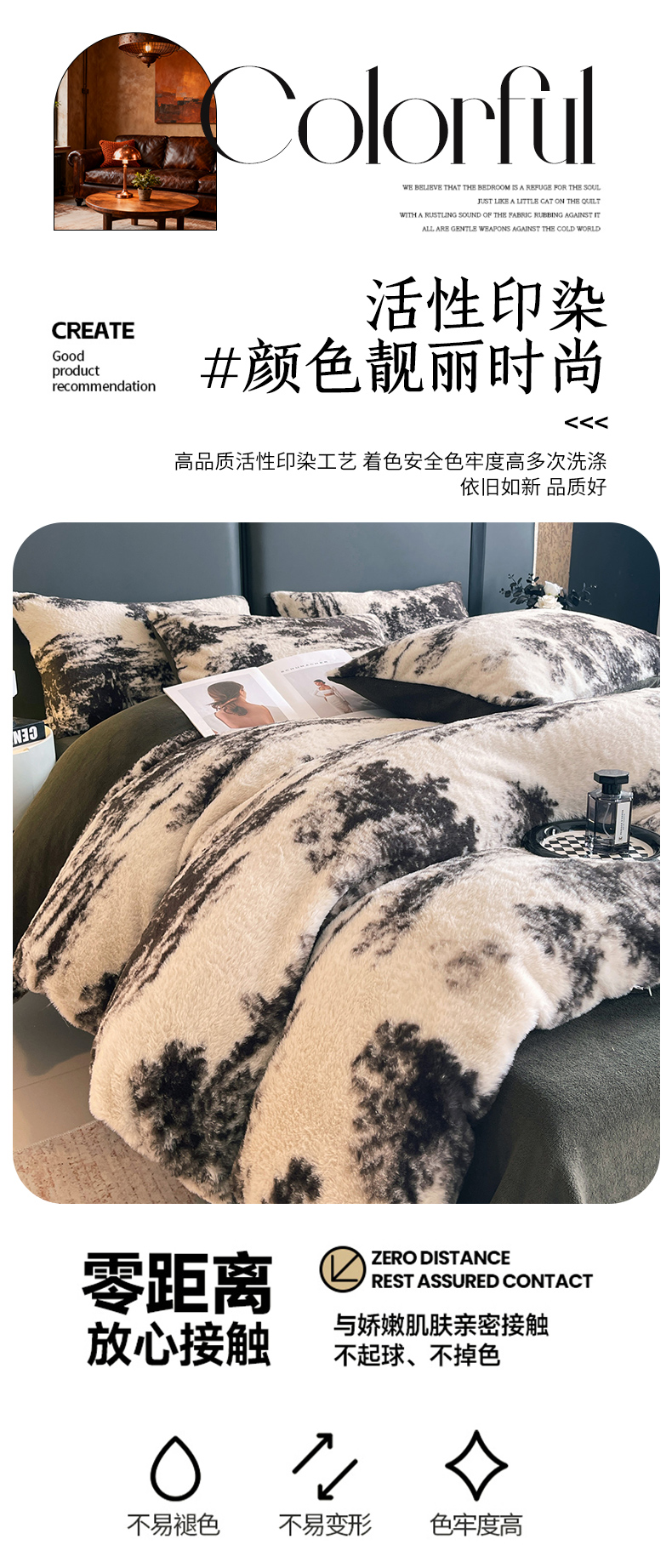 商品名称:佰亿莱 2026新款印花兔毛绒双面锁温暖绒四件套 山月记