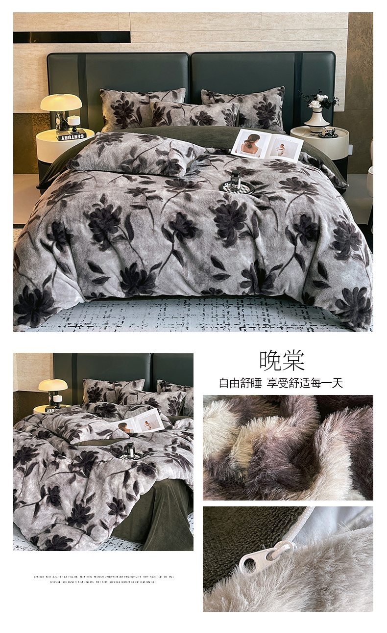 (总)佰亿莱 2026新款印花兔毛绒双面锁温暖绒四件套,凤蝶-咖,栖音,墨栖-咖,秋离,墨栖-白,山月记,瑾色,条纹咖,晚棠,云杉-灰,云杉-咖