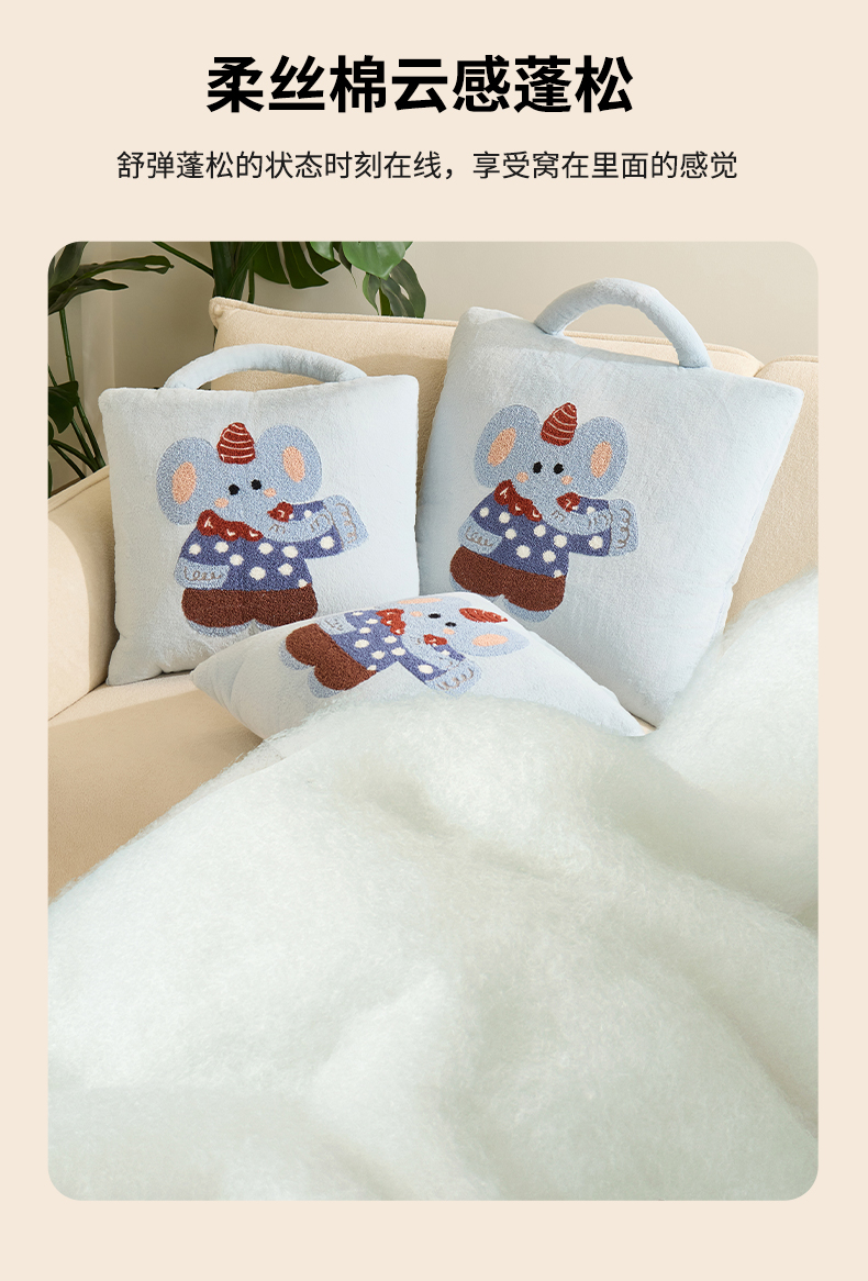 (总)多米家居 2025新款可爱卡通双荣毛巾绣抱枕被,绅士小象 40*40展开105*145,绅士小象 50*50展开145*195,抱抱狮 40*40展开105*145,抱抱狮 50*50展开145*195,蘑菇兔 40*40展开105*145,蘑菇兔 50*50展开145*195,躺平熊猫 40*40展开105*145,躺平熊猫 50*50展开145*195