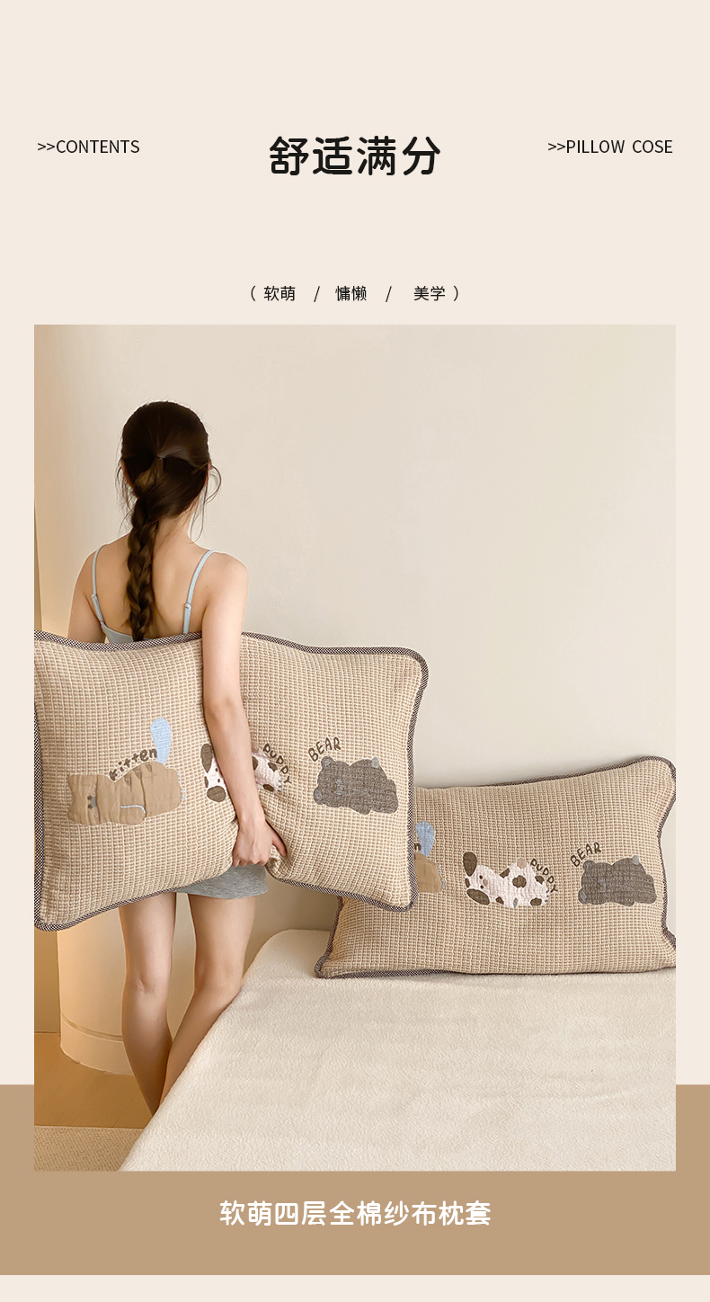 (总)麻依 2025新款治愈风全棉纯棉四层纱布枕巾,组合图仅供展示不可下单,KT时光,抱枕小熊,粉星KT,好多狗,花丛KT,可可小猫,亮晶晶,满心KT,暖心小狗,贴布猫,星星KT,星星人