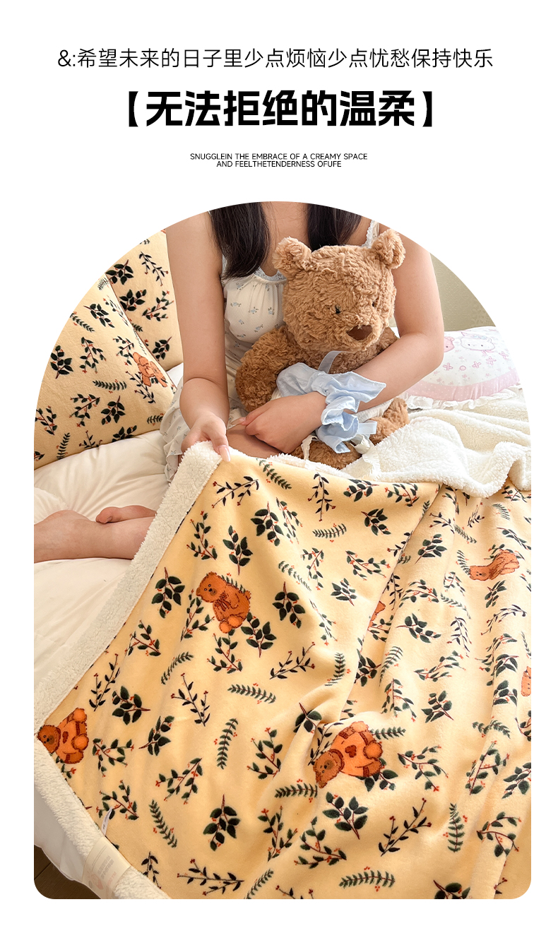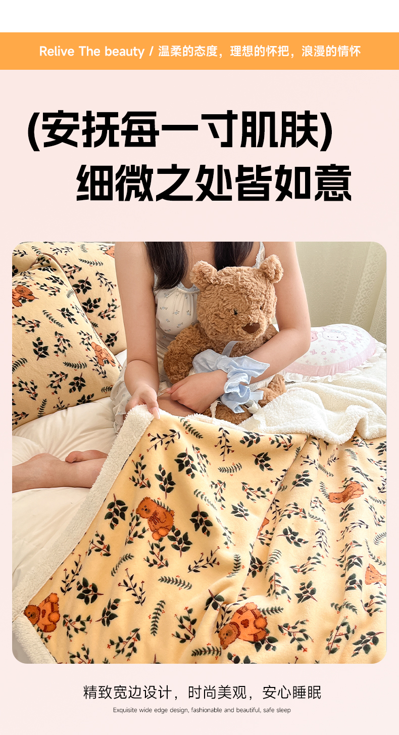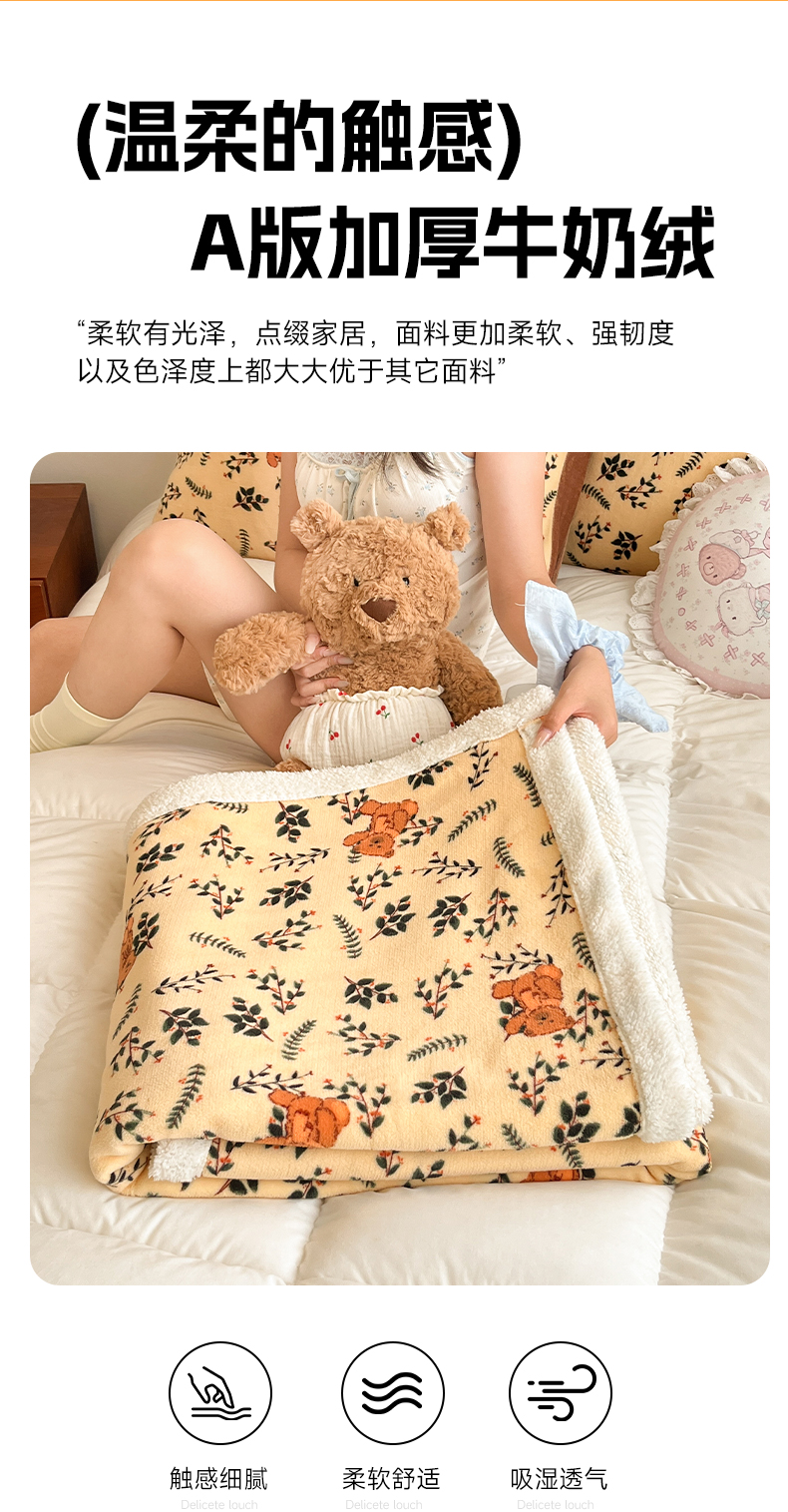 商品名称:红嘴企鹅 2025新款A类ins风卡通可爱加厚牛奶绒羊羔绒毛毯毯子办公室沙发儿童空调盖毯午休毯 摩咖熊