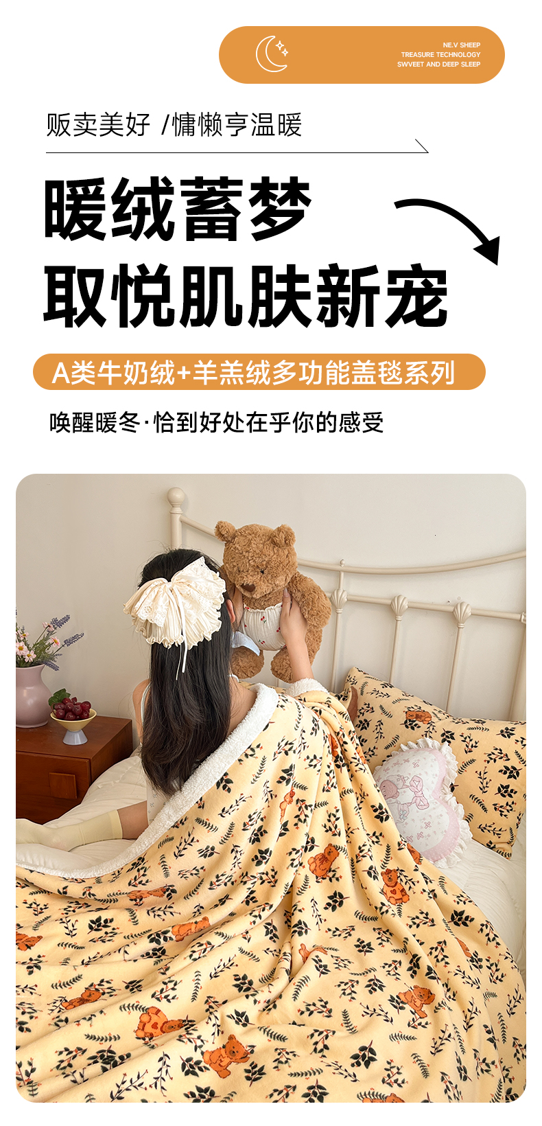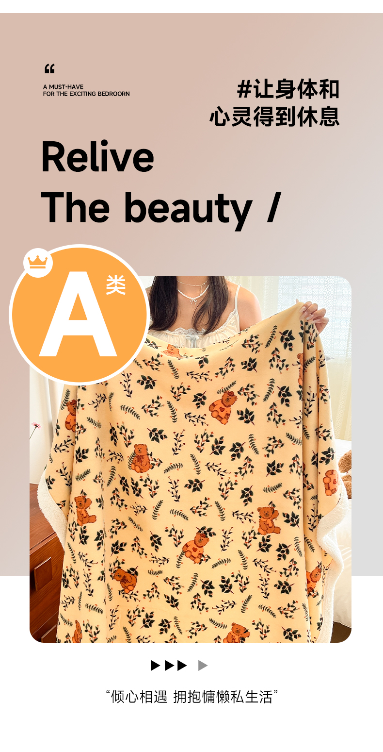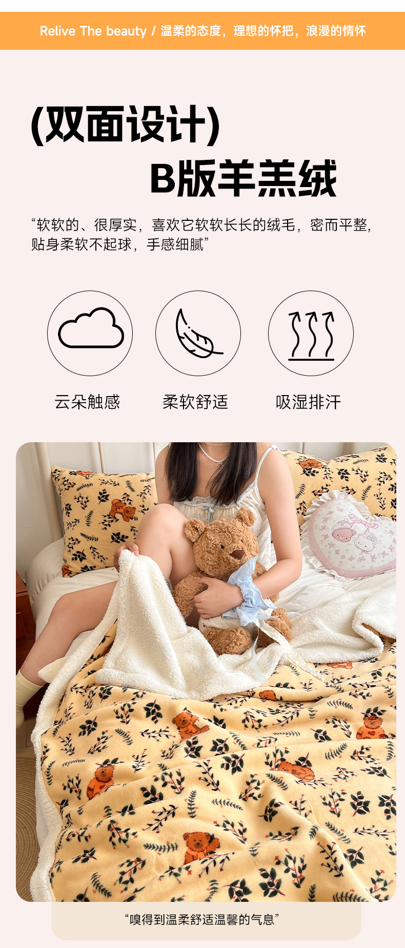 商品名称:红嘴企鹅 2025新款A类ins风卡通可爱加厚牛奶绒羊羔绒毛毯毯子办公室沙发儿童空调盖毯午休毯 摩咖熊