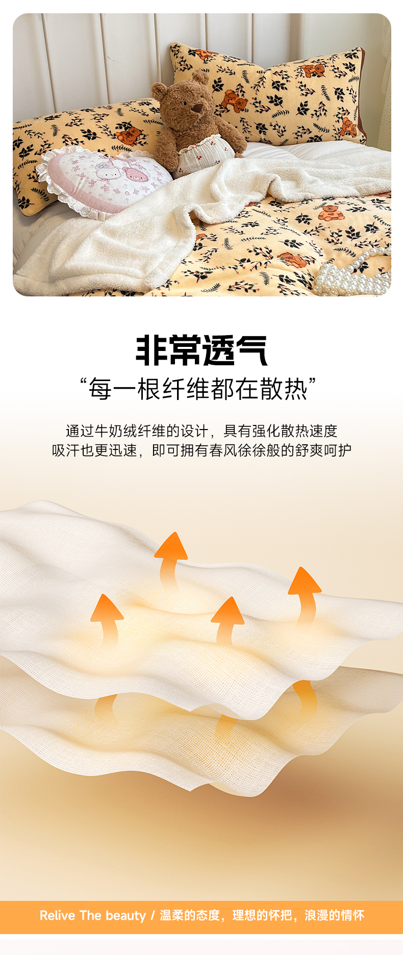 (总)红嘴企鹅 2025新款北欧良品牛奶绒四件套,良品橙色,良品粉色,良品灰色,良品蓝色,良品木绿,良品奶白,良品紫色