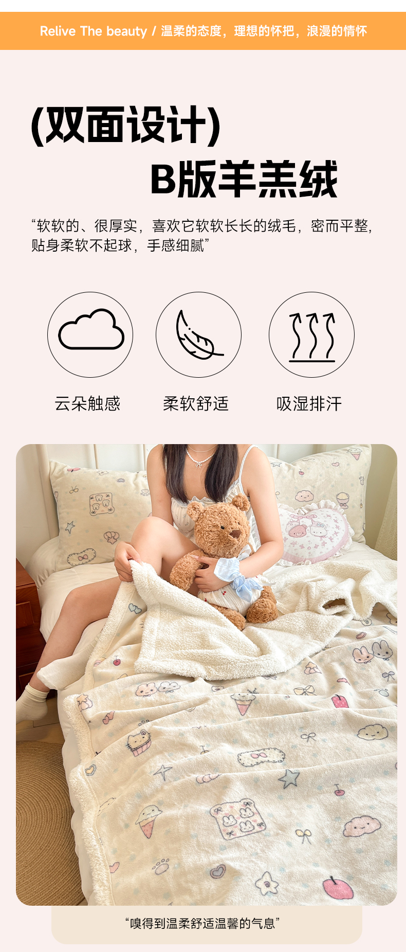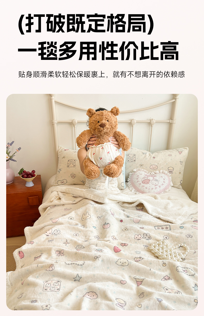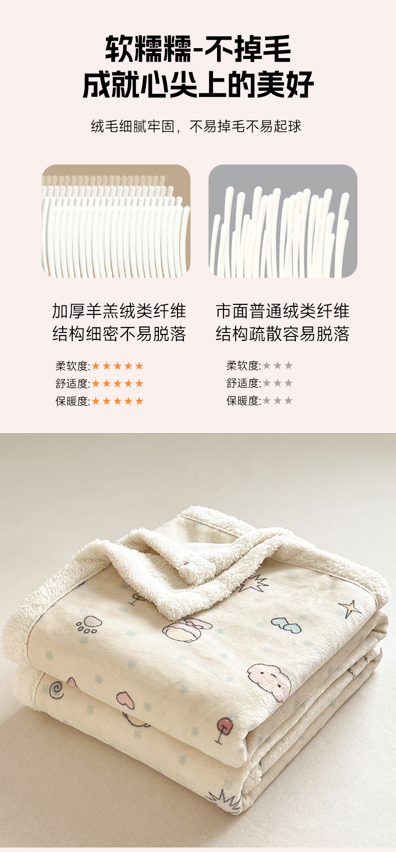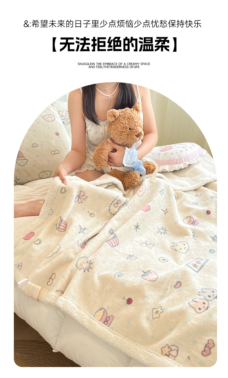 商品名称:红嘴企鹅 2025新款A类ins风卡通可爱加厚牛奶绒羊羔绒毛毯毯子办公室沙发儿童空调盖毯午休毯 小星甜点