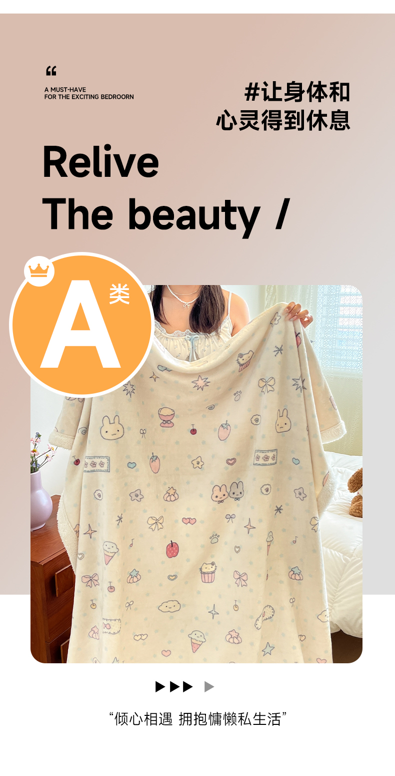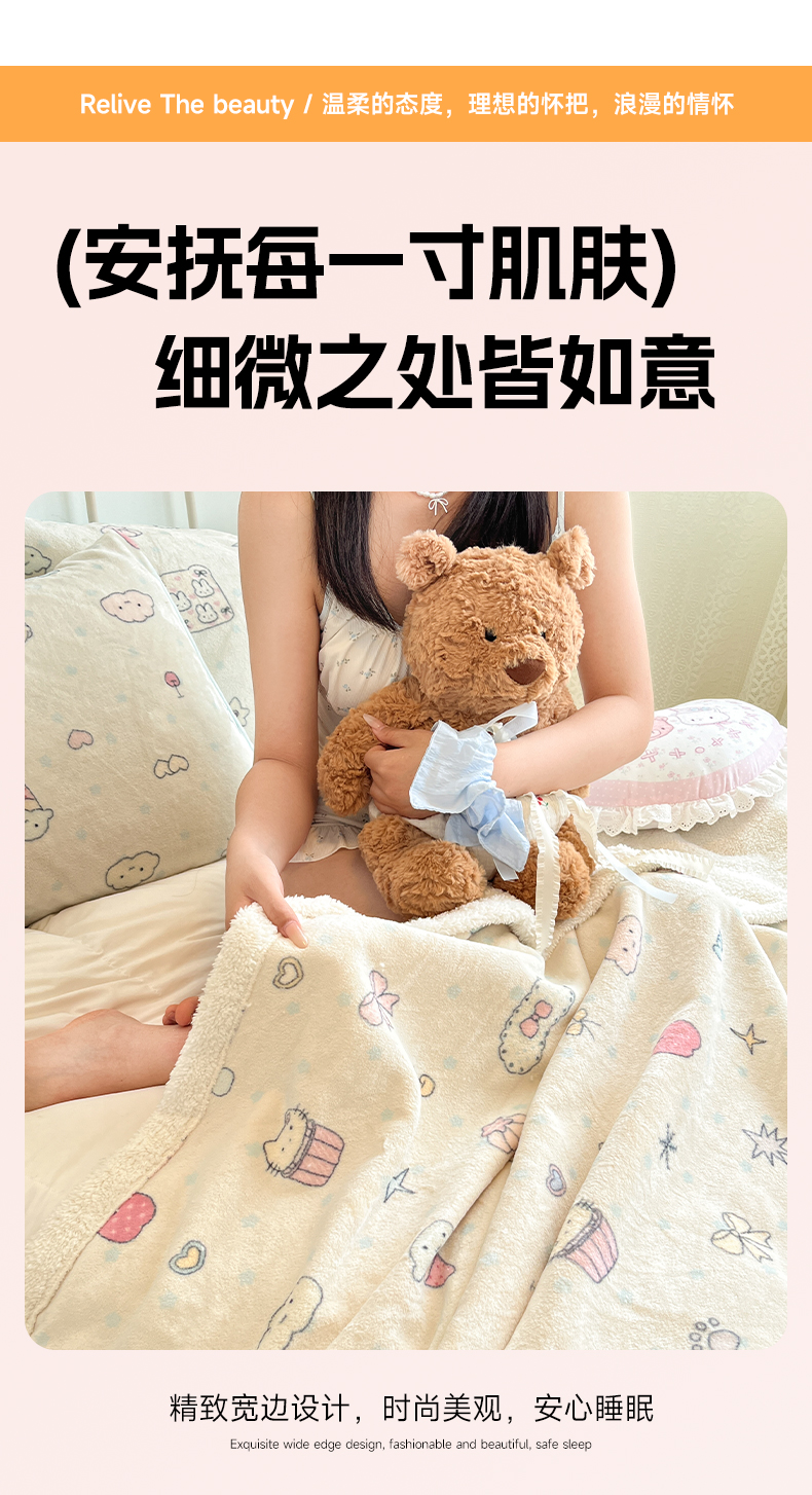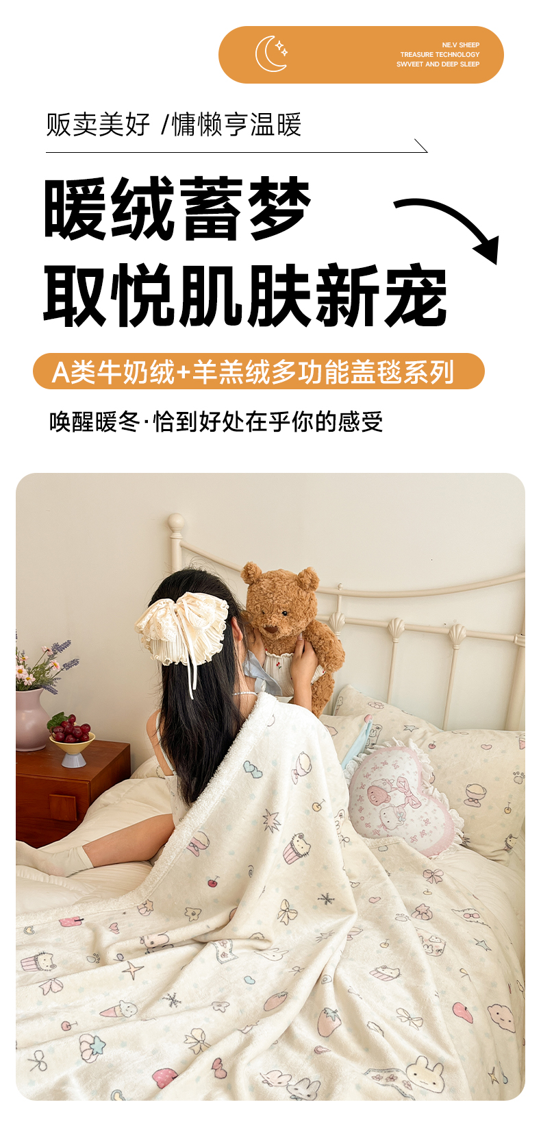 商品名称:红嘴企鹅 2025新款A类ins风卡通可爱加厚牛奶绒羊羔绒毛毯毯子办公室沙发儿童空调盖毯午休毯 小星甜点